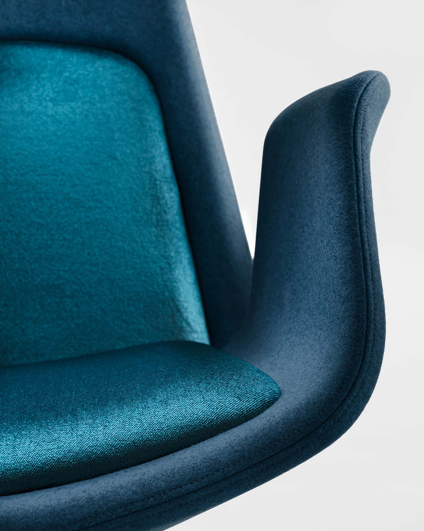 Une collection de fauteuils présidentiels - ergonomiques et légers - avec l'assise incurvée caractéristique, également disponible dans la version contract avec bancs, fauteuils et canapés.