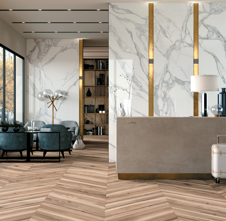 Le charme de la pierre naturelle, la précision des fines veinures, le réalisme des couleurs et l’intense harmonie des nuances s’expriment à travers une collection exclusive de marbres précieux.