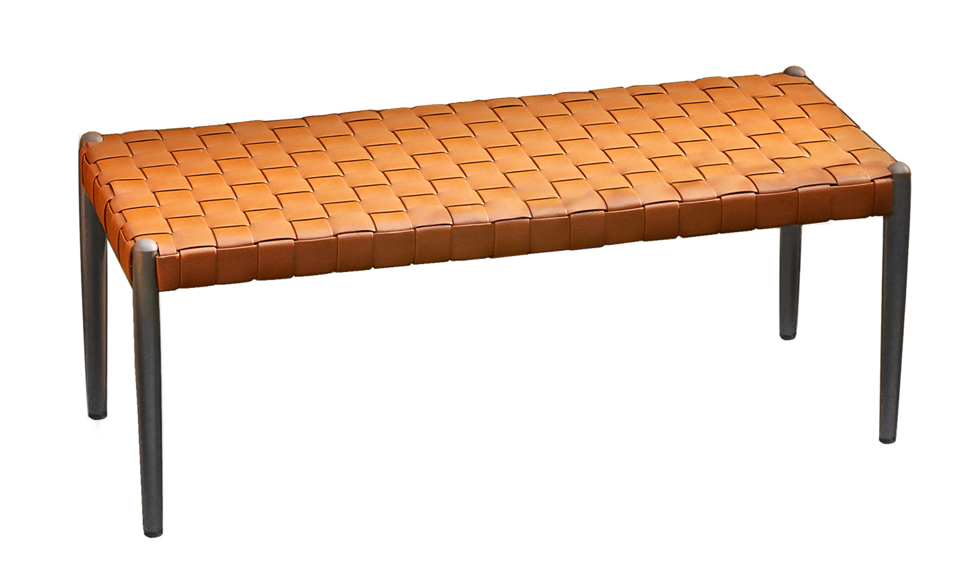 Assise : tressage en résine de polyéthylène imitation cuir coloris camel.