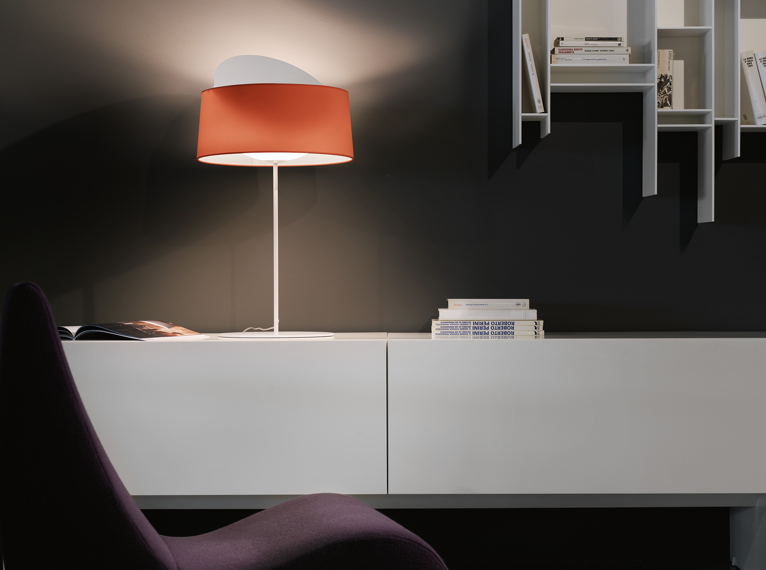 Le design se cache dans les détails : il suffit d'incliner le disque métallique inclinable à l'intérieur de l'abat-jour pour changer le faisceau lumineux. Un simple effleurement et la lumière se libère dans l'espace, pour créer des atmosphères toujours nouvelles et inattendues.