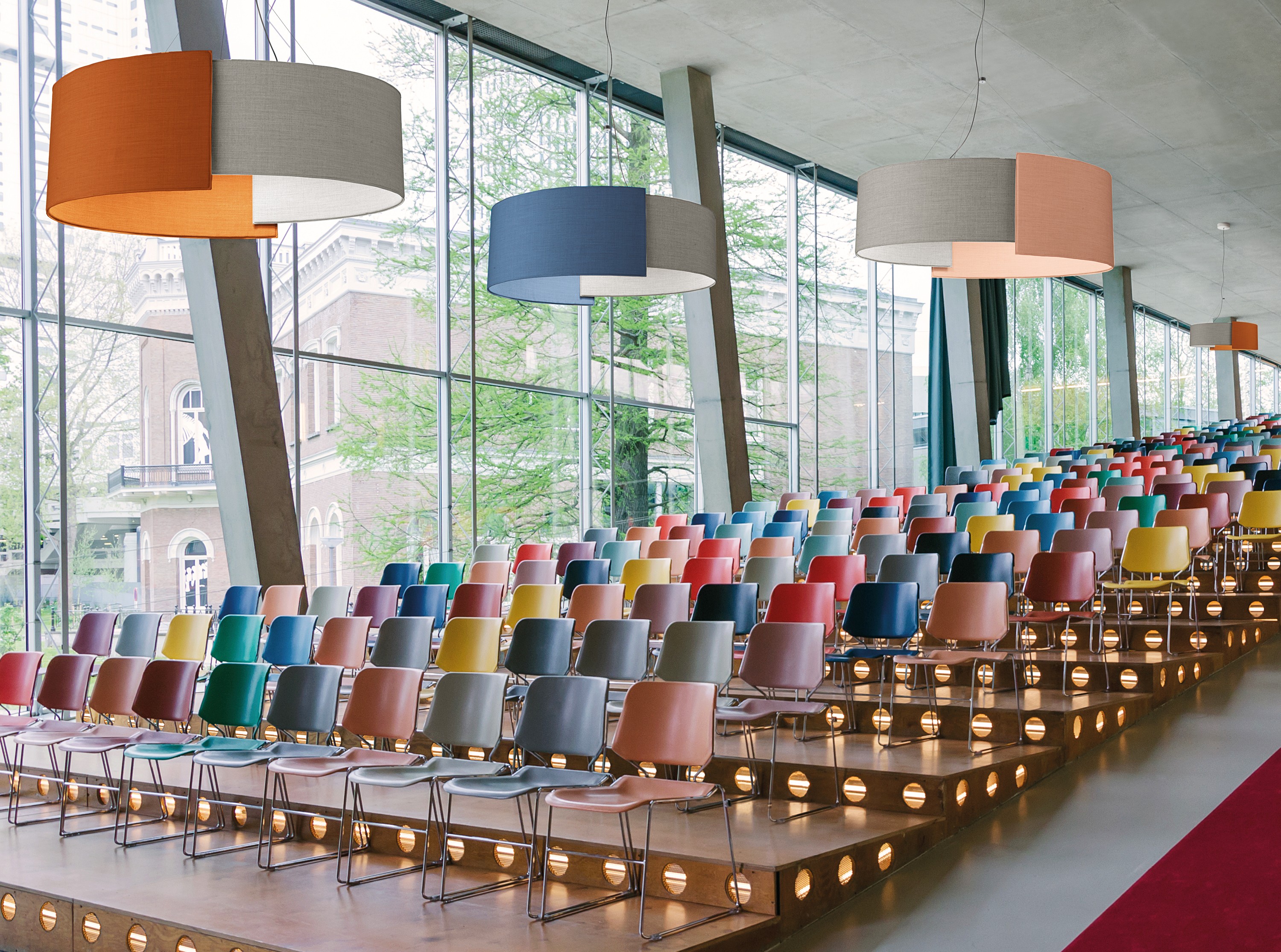 Habillez votre luminaire avec l'allure et la technologie des formes enveloppantes d'Alco recouvertes d'un tissu doux surpiqué, qui offre également un confort acoustique. Les lampes suspendues ou plafonniers de grande taille créent un effet spectaculaire avec un fort impact visuel.