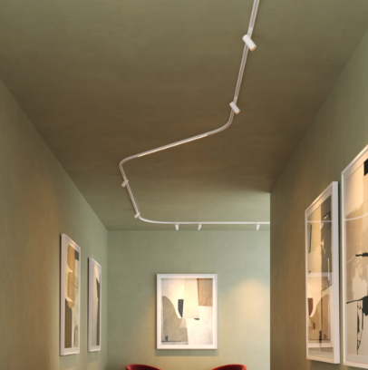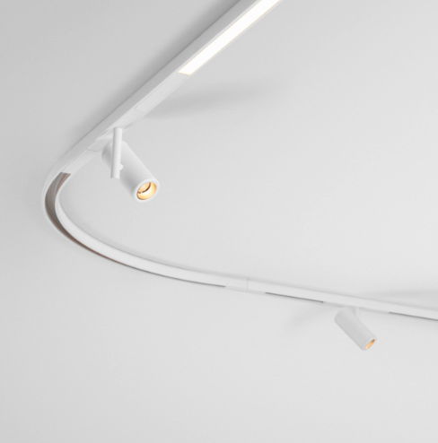 Rail magnétique très mince, Pista Track 48V Surface réunit miniaturisation et personnalisation. Il crée un rail élégant monté en surface sur le plafond ou sur le mur. Associez différents modules sur des rails uniques ou multiples aux longueurs et couleurs variées, avec des spots, des suspensions et plus encore.