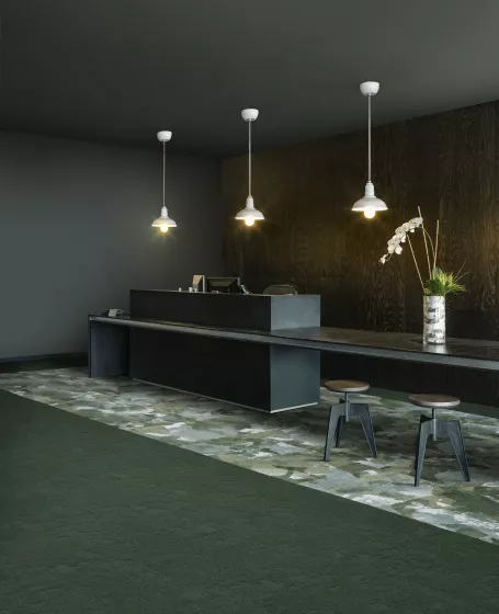 Fluid& apporte une touche de couleur audacieuse à votre espace. Cette collection de dalles de moquette défie les normes traditionnelles en s’ouvrant aux imperfections dans ses motifs, ce qui contribue à son aspect unique et fascinant. Cette collection se distingue par son remarquable sens de la fluidité et du mouvement, renforcé par une texture en velours bouclé et des motifs qui semblent se mouvoir gracieusement.