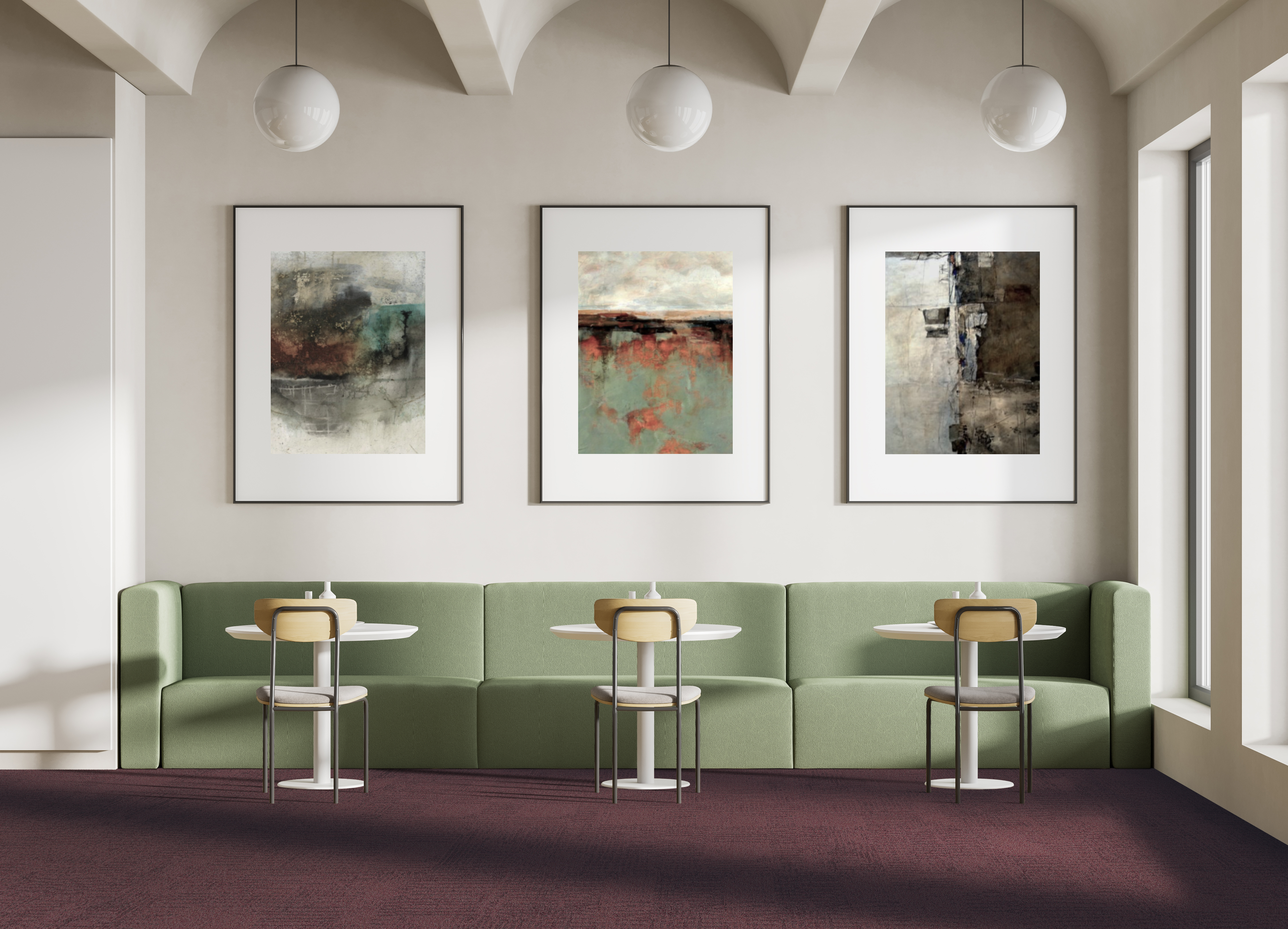 Le pays flamand est aussi ses prairies. Ces champs ouverts caractéristiques façonnent le paysage de nombreuses régions rurales et constituent un lieu apaisant pour les arbres, les fleurs et, souvent aussi, pour le bétail. Meadow interprète les courbes de ce paysage typique et reproduit le rythme du vent soufflant dans l'herbe dans une dalle de moquette organique.