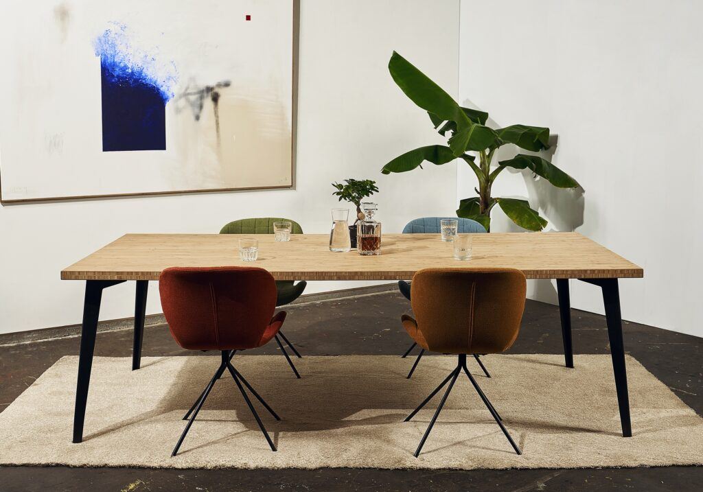 La créativité du designer, alliée aux propriétés particulières du bambou, font de chaque table en bambou un meuble unique. Un panneau de bambou MOSO®, en particulier avec un parement en Density®, est dur et convient parfaitement comme dessus de table. MOSO® fournit des panneaux massifs en bambou comme matériau de base dans différents styles et dimensions. Les menuisiers ou les agenceurs peuvent transformer ce matériau en un plateau de table pour pratiquement tous les applications. En combinaison avec des carrelets en bambou, une table totalement en bambou peut également être créée.
