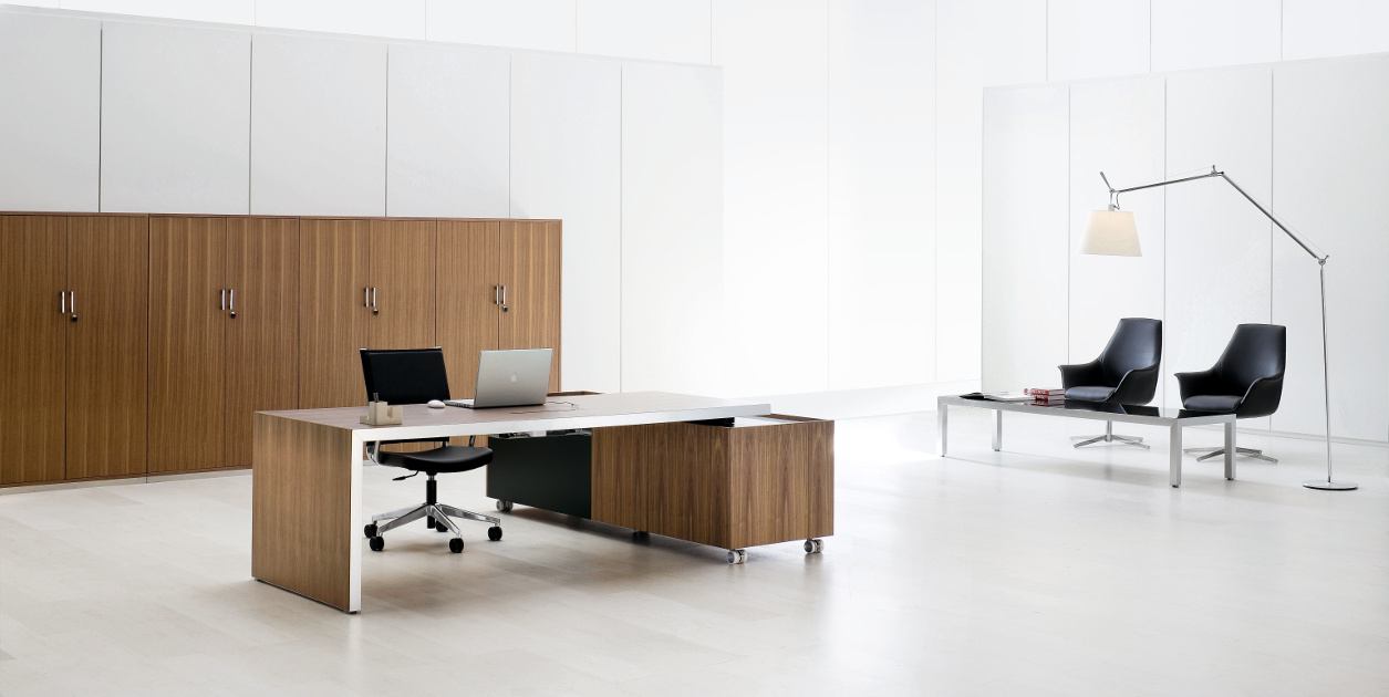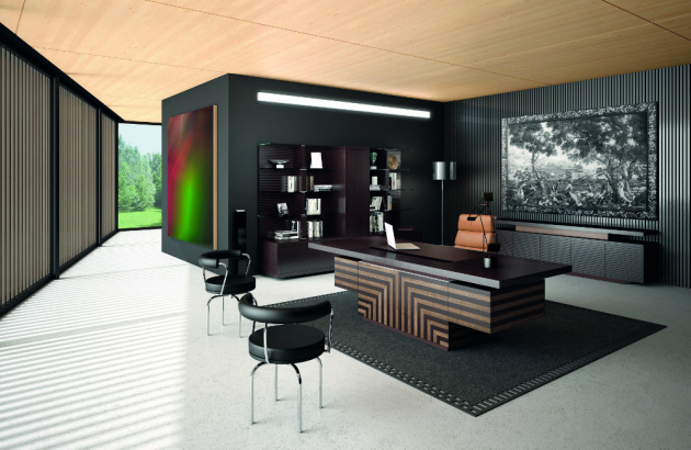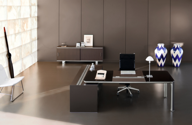 Le FATTORE ALPHA les bureaux exécutifs sont une collection unique en raison de sa simplicité de conception géométrique, de l'accent mis sur les détails, de l'élégance des surfaces en bois ainsi que de l'éclat des compartiments en métal et en verre. Cette ligne impressionnante projette la personnalité de l'exécutif avec fonctionnalité et créativité.