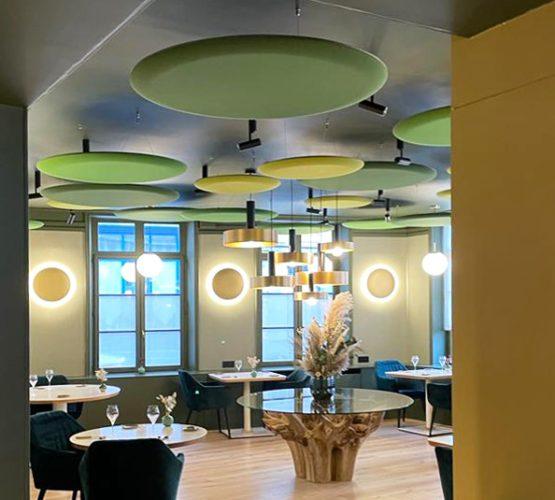 Le produit PANNEAU ACOUSTIQUE ET LUMINAIRE ACOUSTIQUE de MYO SOLUTIONS est prescrit dans des projets de type : Hôtellerie Restauration .