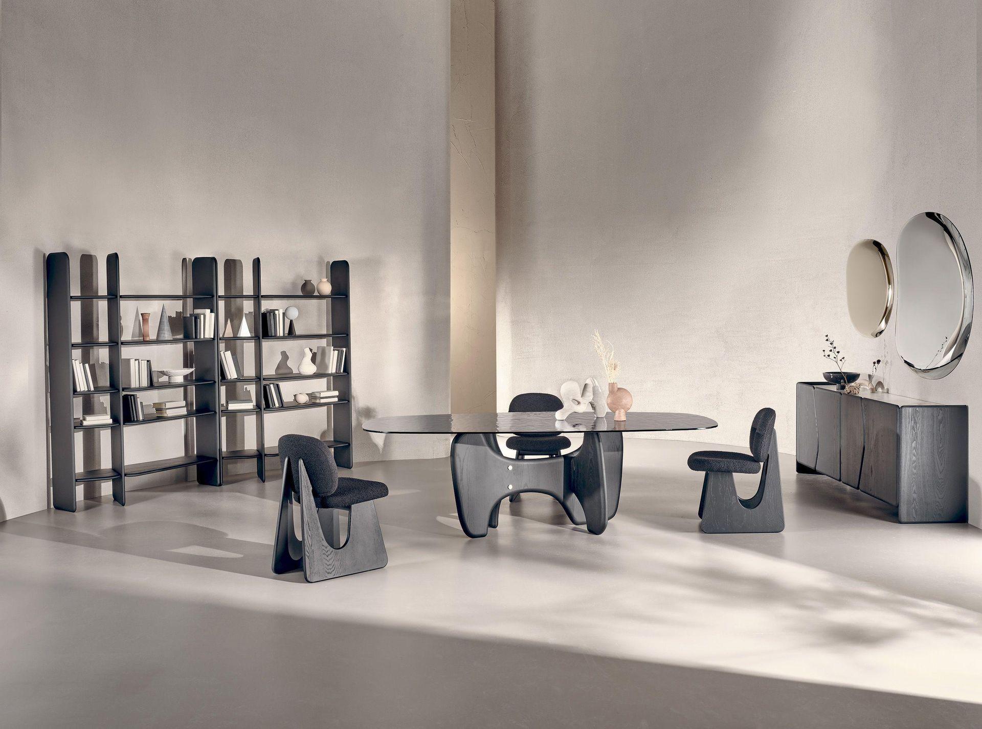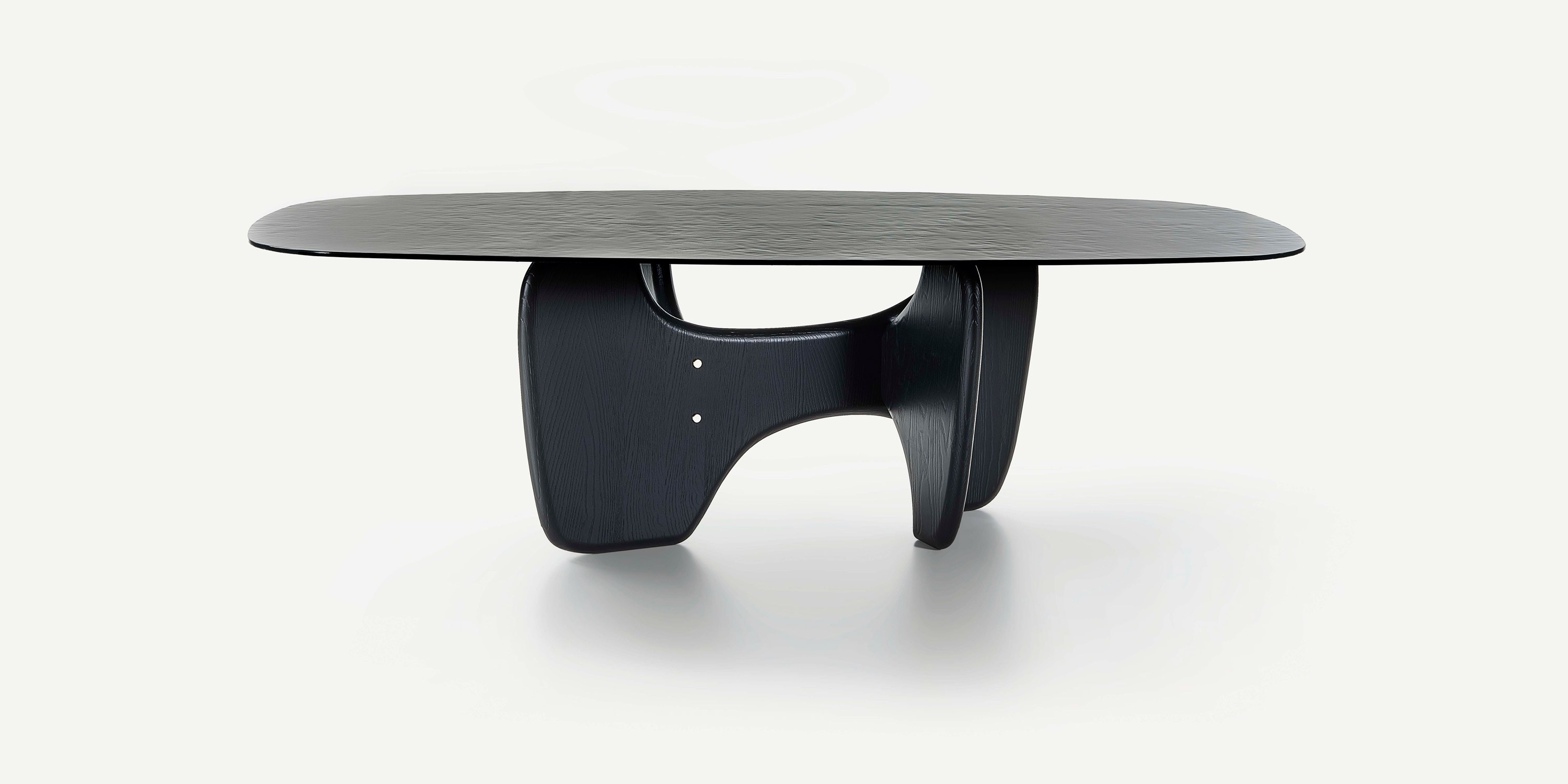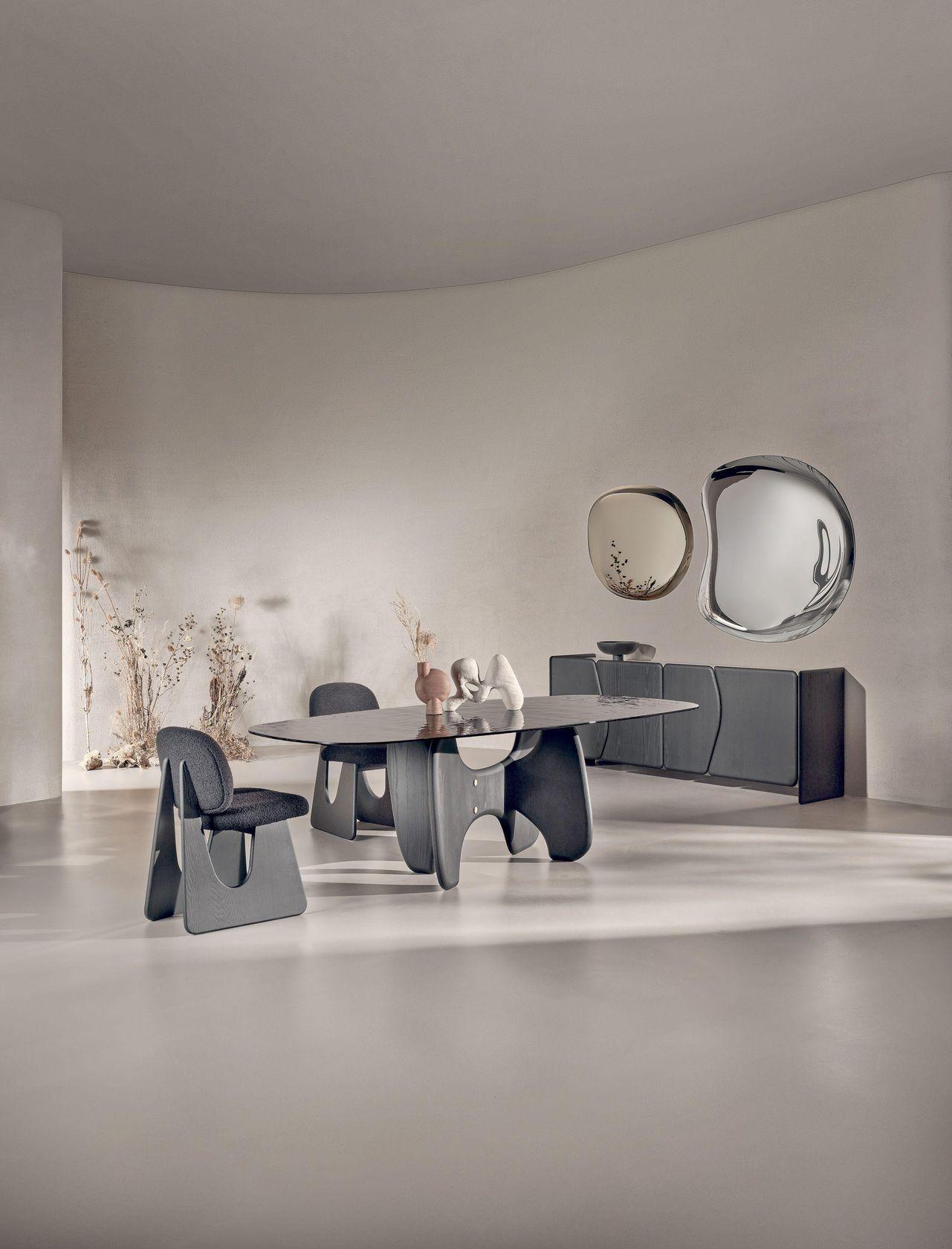 Les lignes douces et sculpturales de la table Tribe rappellent l’art et la culture tribale, évoquant des sensations de robustesse et de dynamisme appartenant à un monde ancien et mystérieux. Un meuble unique, avec une base en bois contrastée avec un plateau en verre, en marbre ou en céramique, il est capable de transformer tout type d'environnement.