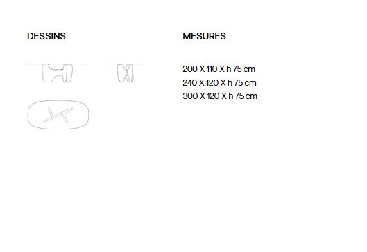 Le produit Table Tribu du fabicant Nature Design a une longueur de 200 à 300 cm, une largeur de 110 à 120 cm,