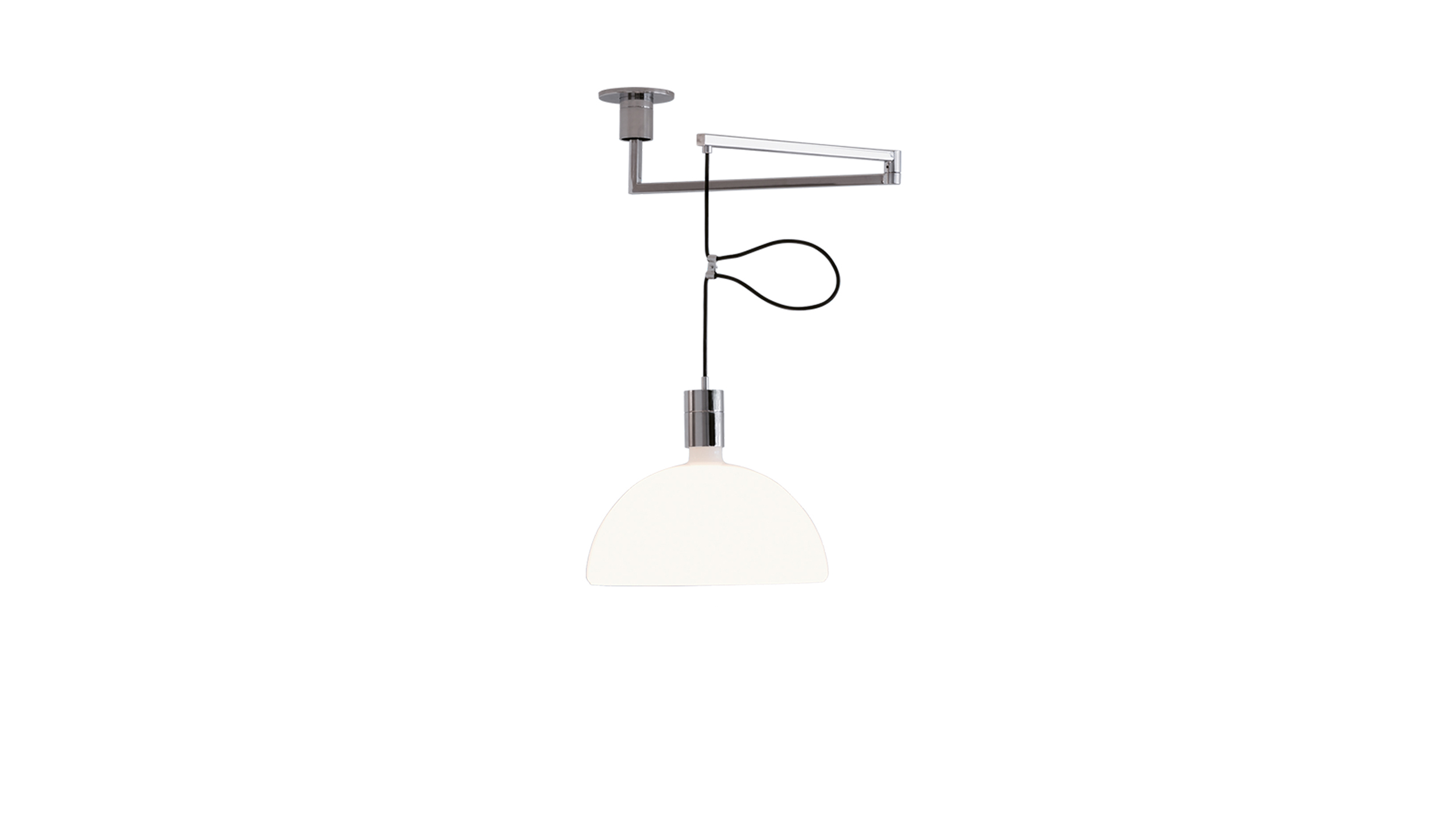 La collection Albini AM/AS représente la philosophie rationaliste de l’architecte milanais. Un design de 1969 qui combine les formes linéaires avec l’extrême qualité des matériaux utilisés, comme le verre soufflé des diffuseurs. Le but est de gérer les différents volumes de l’espace avec un seul design: plafond, mur, sol et table.