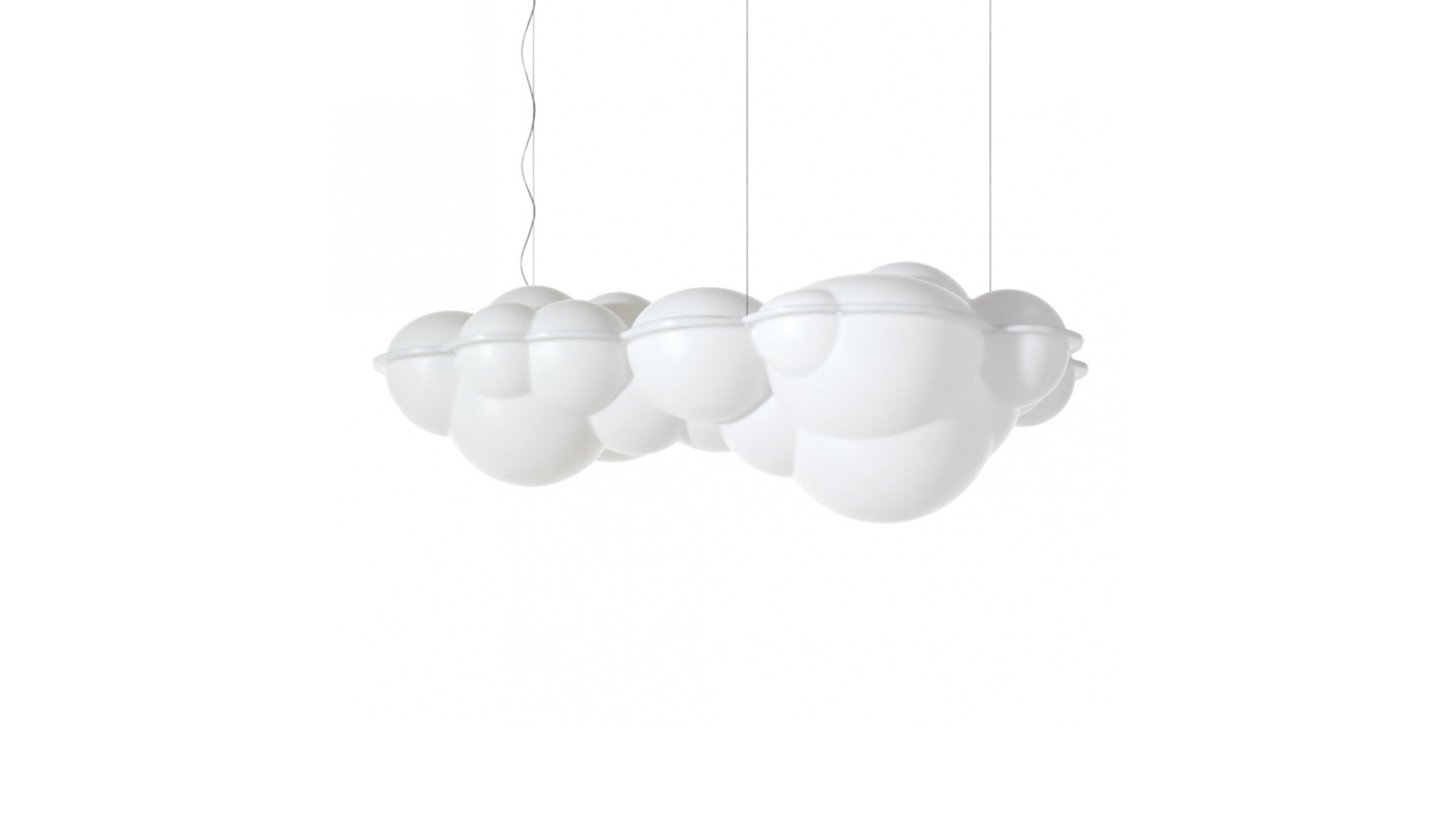 Mario Bellini a conçu Nuvola en 1974 pour ‘Pianeta Ufficio’. Une collection métaphysique d’un grand impact visuel, réalisée en rotomoulage pour une diffusion de la lumière à 360°.