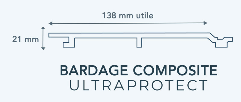 Le produit LAME DE BARDAGE COMPOSITE IMITATION BOIS SENSATION STRUCTURE ULTRAPROTECT du fabicant Neowood a une épaisseur de 21 mm, une longueur de 2800 mm, une largeur de 138 mm (utile) 160mm mm,