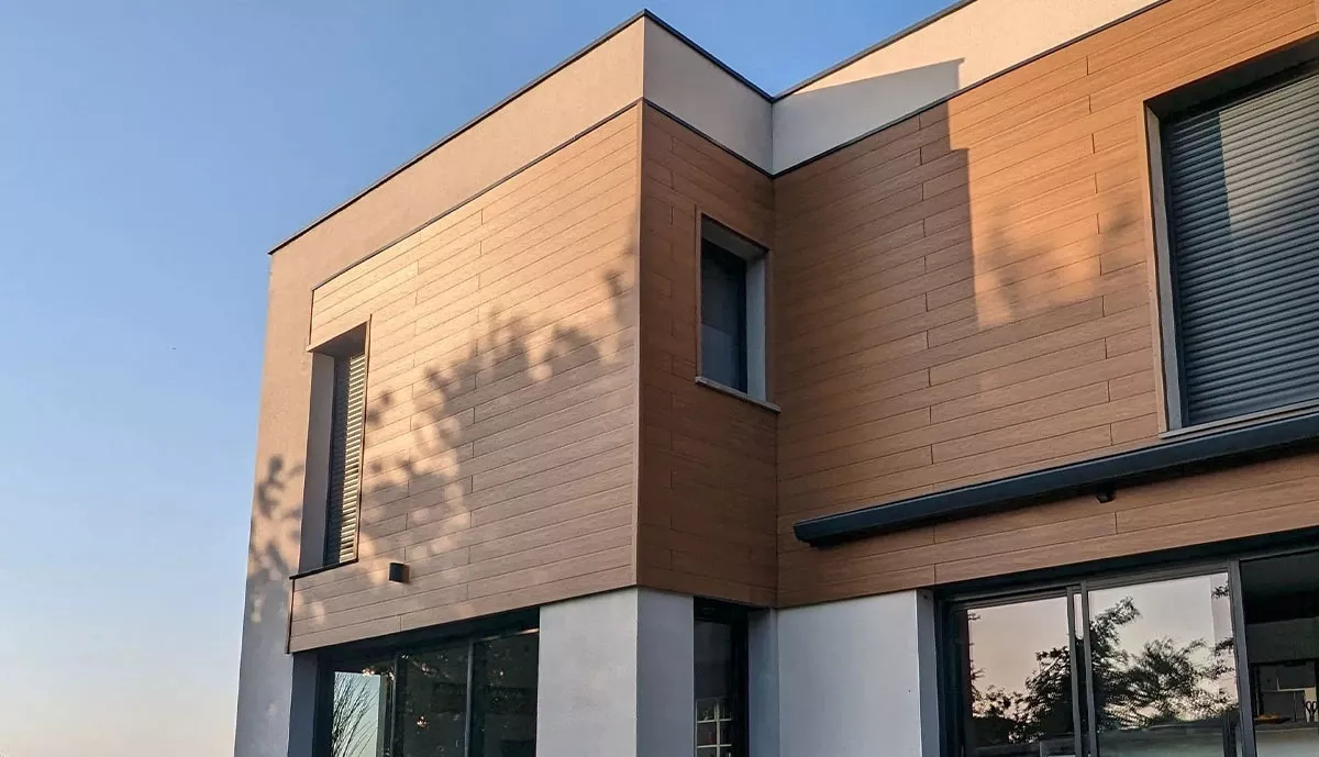 Les lames de bardage structuré neowood imitent parfaitement le veinage du bois naturel pour un rendu bois ultra réaliste. Les possibilités sont nombreuses avec ce bardage design :
