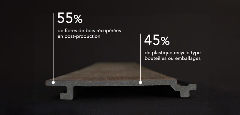 Le produit LAME DE BARDAGE COMPOSITE IMITATION BOIS SENSATION STRUCTURE ULTRAPROTECT de Neowood est composé de : Bois et dérivés .