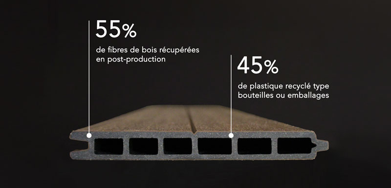 Le produit LAME DE CLÔTURE BOIS COMPOSITE ULTRAPROTECT de Neowood est composé de : Bois et dérivés .