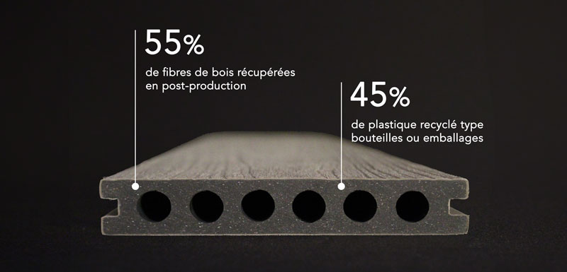 Le produit Lame de terrasse composite EXCELLENCE semi pleine | neowood de Neowood est composé de : Bois et dérivés .