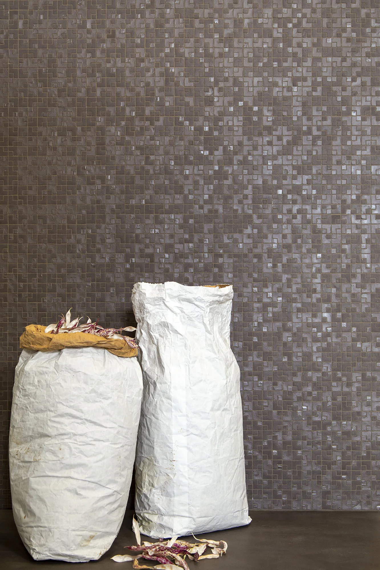 Sumi-e Lambda λ est un projet de mosaïque éco-durable fabriqué avec du verre et de l’argile recyclés.