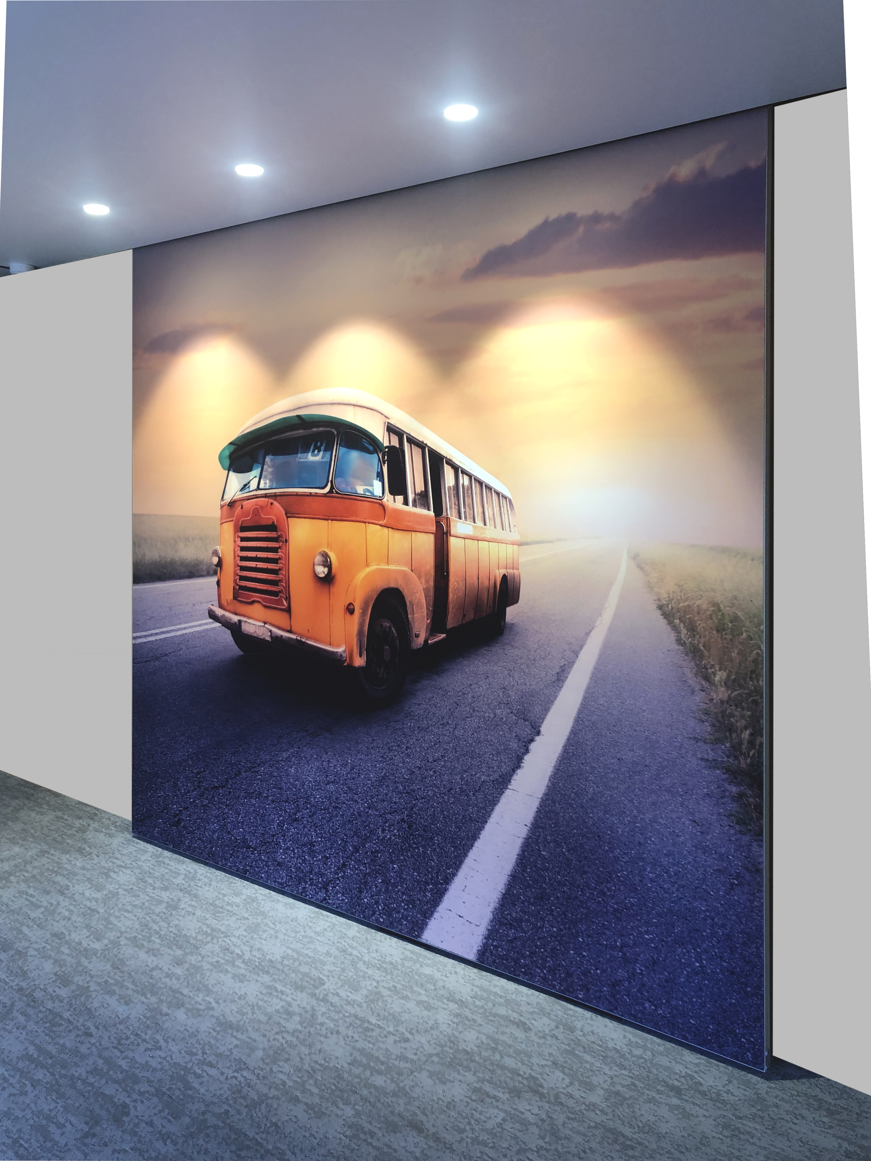NEW/LUX3D coupés sur-mesure et tendus sur votre mur, plafond, ou cadre sans harpon.