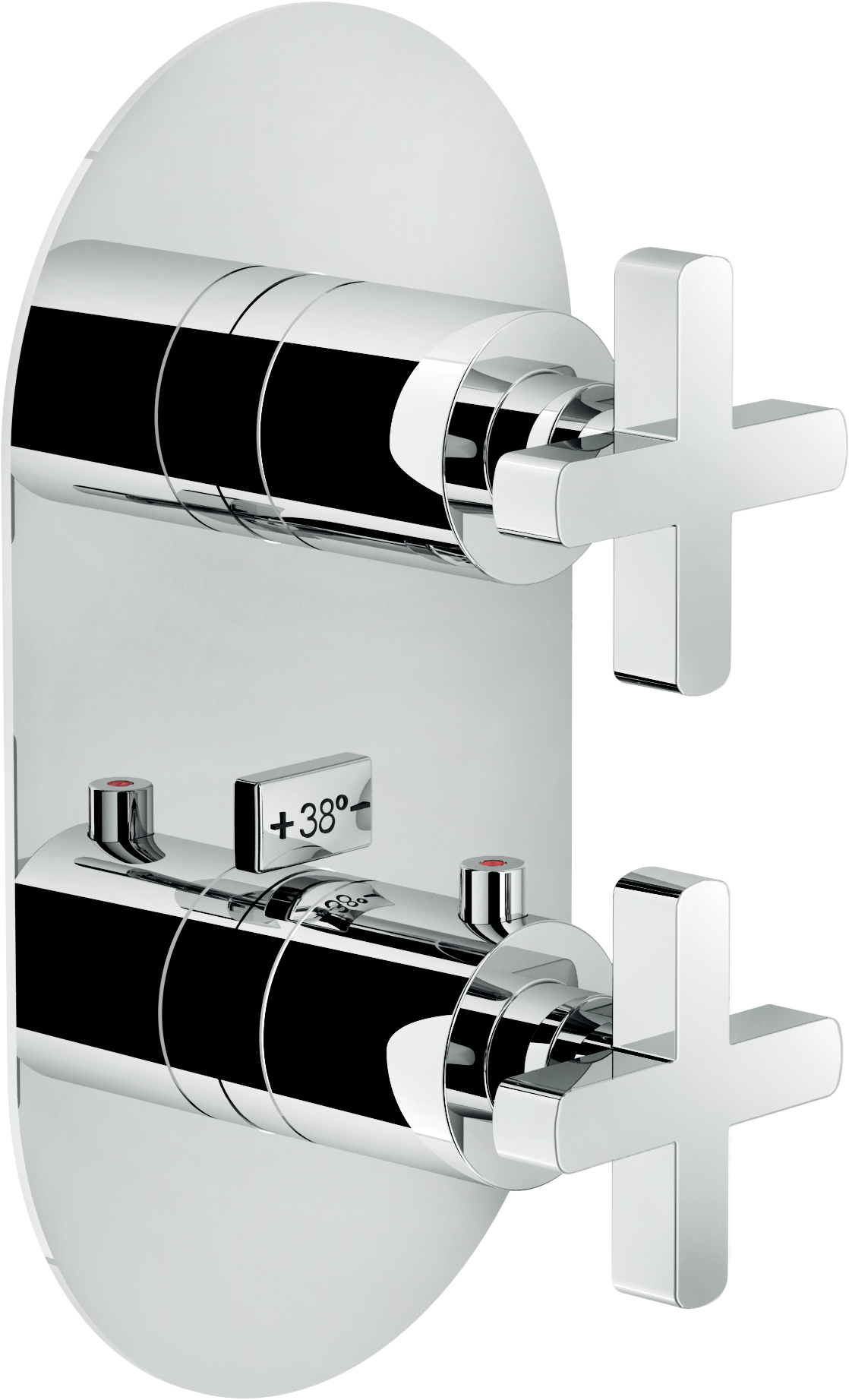 Le produit FACADE THERMO 2 SORTIES LIRA CHROME - LR116102CR du fabricant Nobili classé dans la catégorie Sanitaire - Plomberie - ECS > Robinetterie sanitaire > Douches : Mitigeurs thermostatique est référencé dans la Matériauthèque digitale Materiaux.archi.