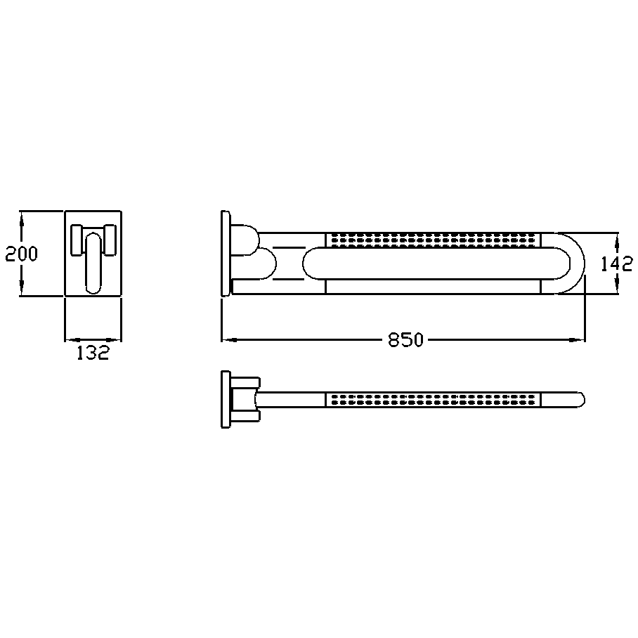 Le produit Nylon Care 400 Barre d'appui rabattable du fabicant NORMBAU a une longueur de 850 mm, une largeur de 132 mm,