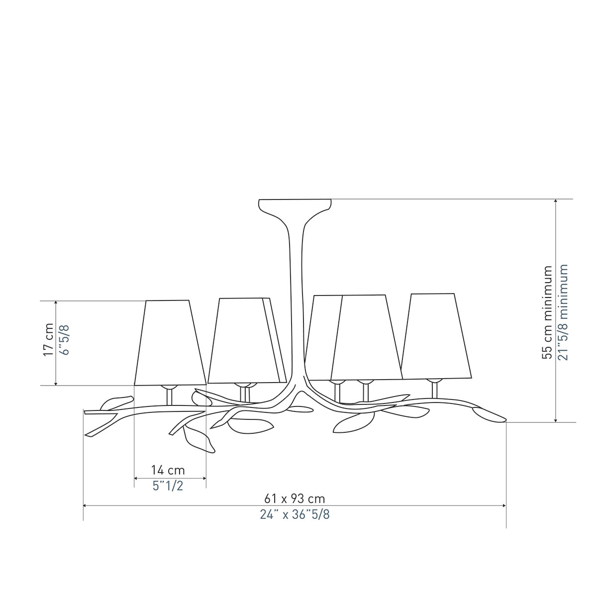 Le lustre Folia évoque délicatement le branchage d’un jeune arbre en pleine renaissance, alliant poésie végétale et pureté formelle. Sa structure centrale en bronze massif se décline en six bras sinueux, chacun coiffé d’un petit abat-jour conique en chintz écru, créant un éclairage délicat et intimiste .