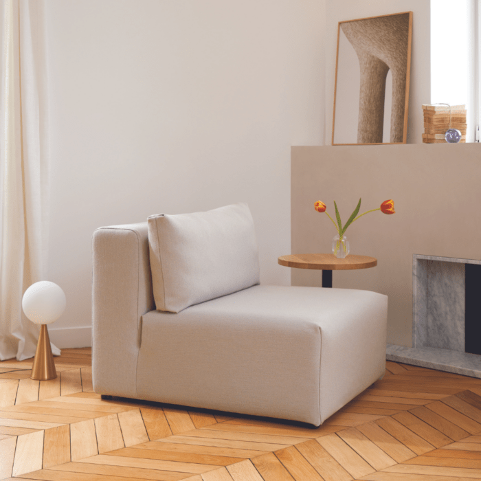 La structure du canapé est fabriquée dans le Nord de la France avec du bois certifié FSC, témoignant de l’exigence de la marque en matière de choix des matériaux.