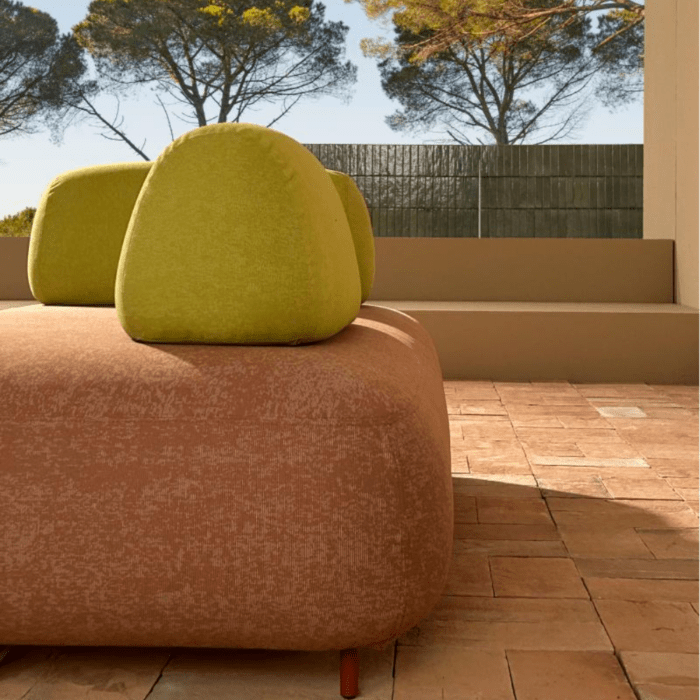 Buddy Oasi est une solution d’extérieur qui vient agrandir la collection de meubles rembourrés Buddy, en maintenant le contraste entre les volumes pleins de l’assise et la légèreté des pieds. Pouf avec assise rembourrée en mousse de polyuréthane et pieds en aluminium. Housse entièrement imperméable et le revêtement en tissu d’extérieur déhoussable permettent de l’entretenir facilement. Possibilité de placer sur le pouf un dossier mobile en mousse de polyuréthane aux formes douces et allongées.
