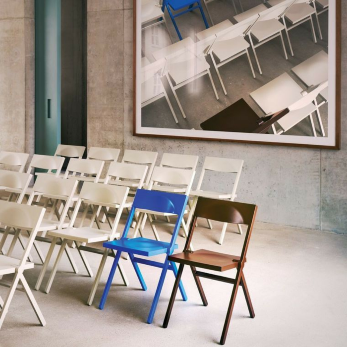 Piana est une chaise pliante dessinée par David Chipperfield empilable et encastrable, editée par la célèbre marque italienne Alessi, la chaise pliante Piana est fabriquée en polypropylène et en fibre de verre. Son assise et son dossier en partie incurvés procure un véritable confort d’assise. La chaise Piana multifonction est pliante et empilable et peut être utilisée dans de nombreux espaces privés ou professionnels. La chaise pliante Piana Alessi se décline en 6 couleurs attractives: jaune, rouge, vert, gris, blanc et noir.