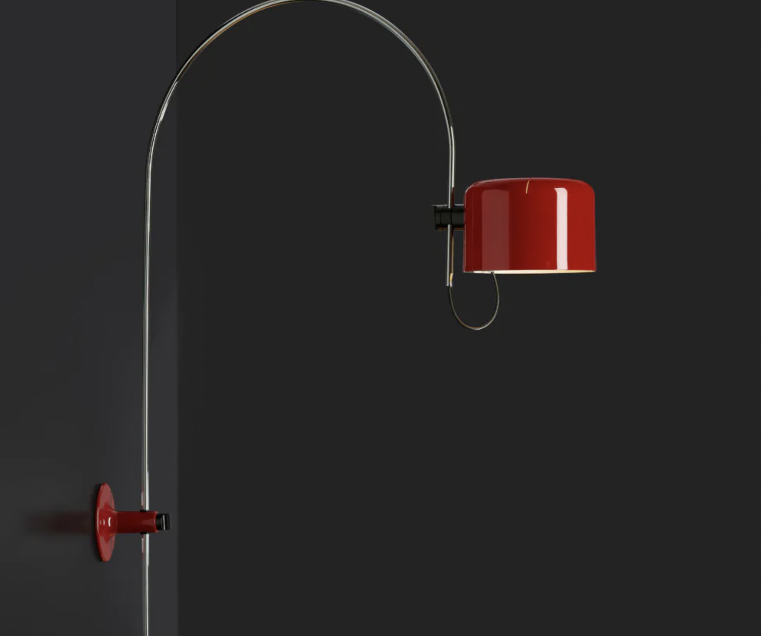 La série Coupé , conçue par Joe Colombo , a été initialement conçue comme une variante de la famille Spider, fille du même designer, dont elle conserve la base et la tige. Le mécanisme simple et ingénieux qui relie la tige à la tête permet de diriger le faisceau lumineux dans différentes directions, en déplaçant le capuchon vers le haut, le bas et latéralement.
