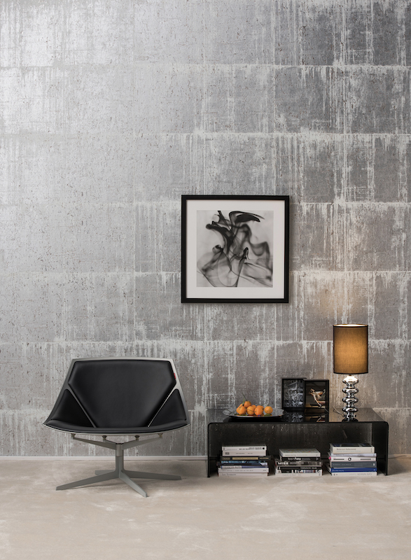 Véritable matière vivante évoquant l’arbre dont elle provient (l’écorce du chêne-liège), des éclats précieux renvoient la lumière différemment selon l’heure du jour et le matériau se révèle toujours en toute splendeur.