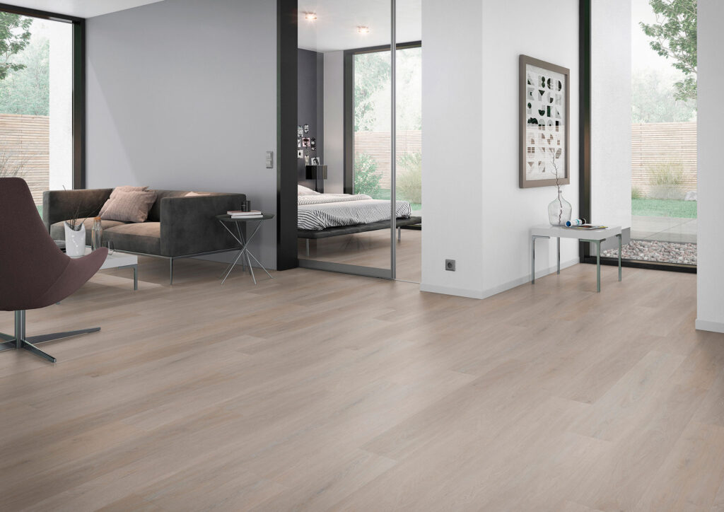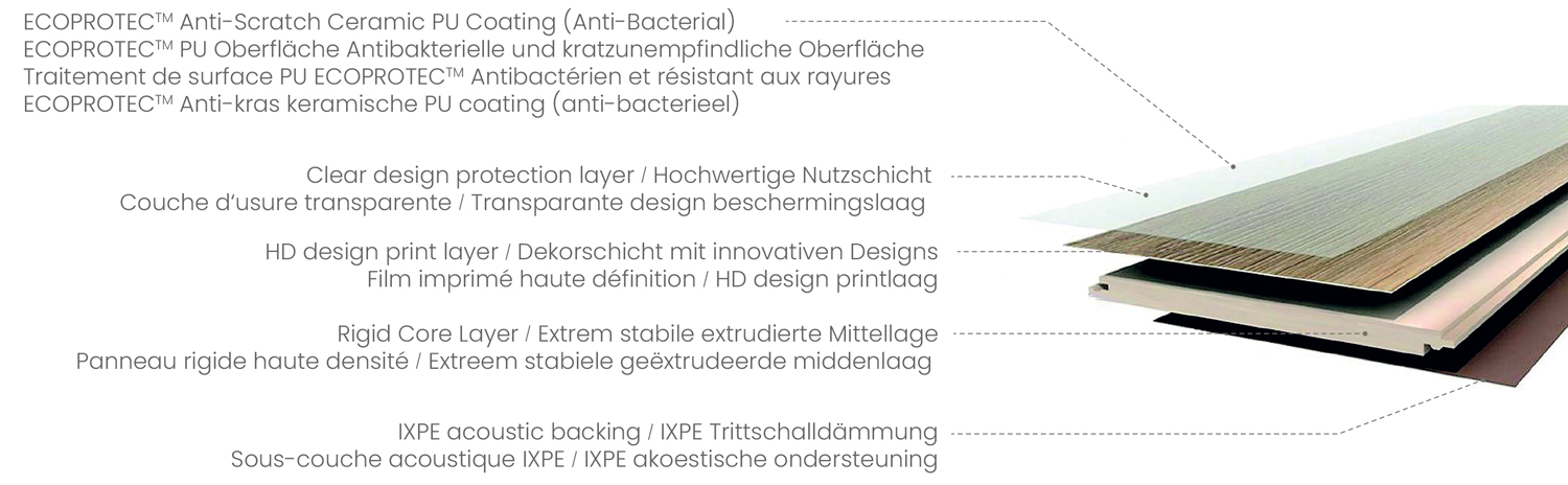 Nos décors grainés au registre ajoutent de l’authenticité et du style à une pièce spacieuse. Doté d'un système d’assemblage par clic et d'une construction robuste, ce revêtement de sol garantit une stabilité dimensionnelle et une durabilité inégalée. Cela permet une installation facile sur des sols céramiques existants, sans aucun risque d’effet télégraphique. La couche d'usure de 0,55 mm garantit la protection de votre revêtement de sol, même dans un environnement très fréquenté.
