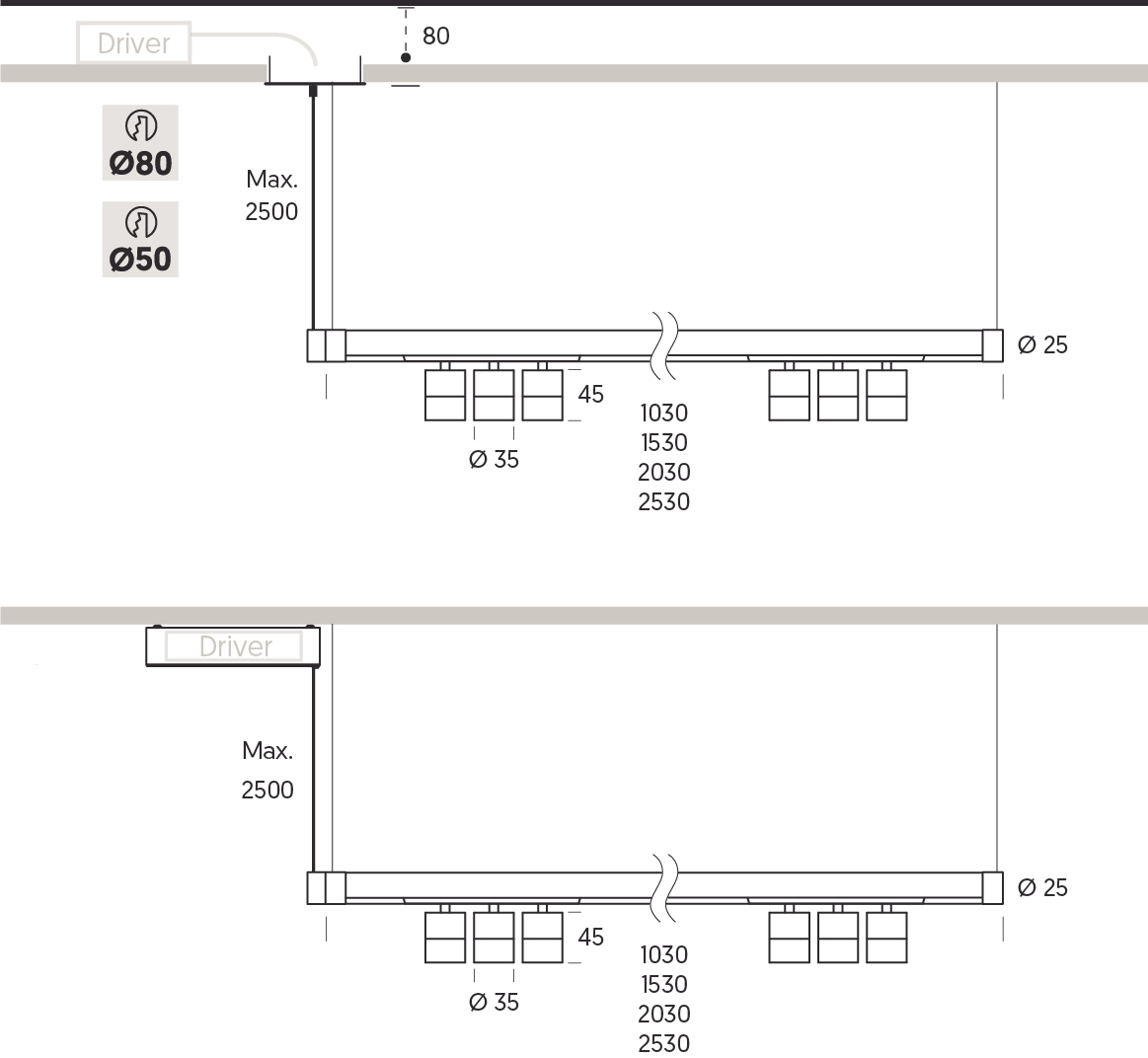 Puissance 1000mm , 1500mm , 2000mm , 2500mm
