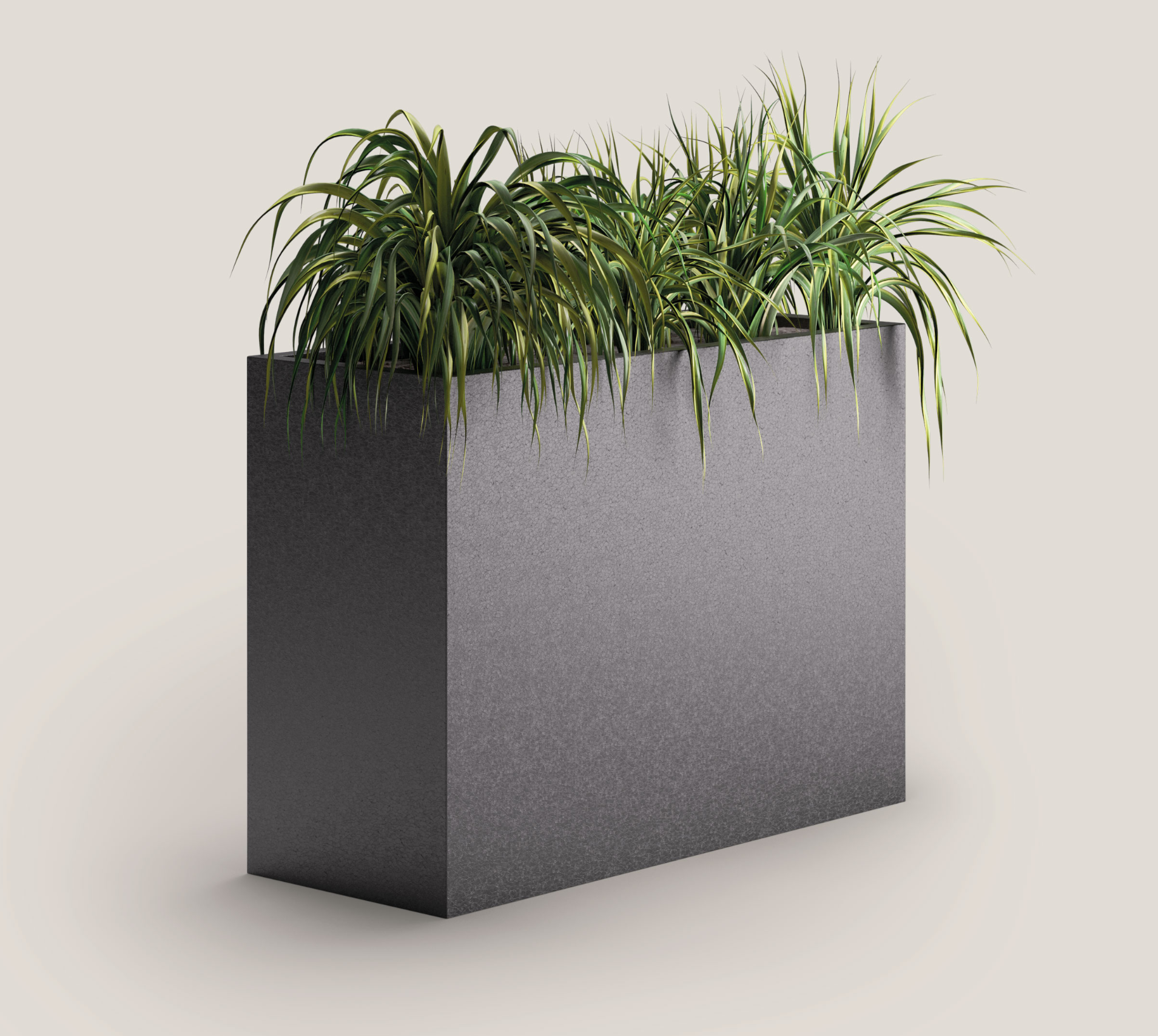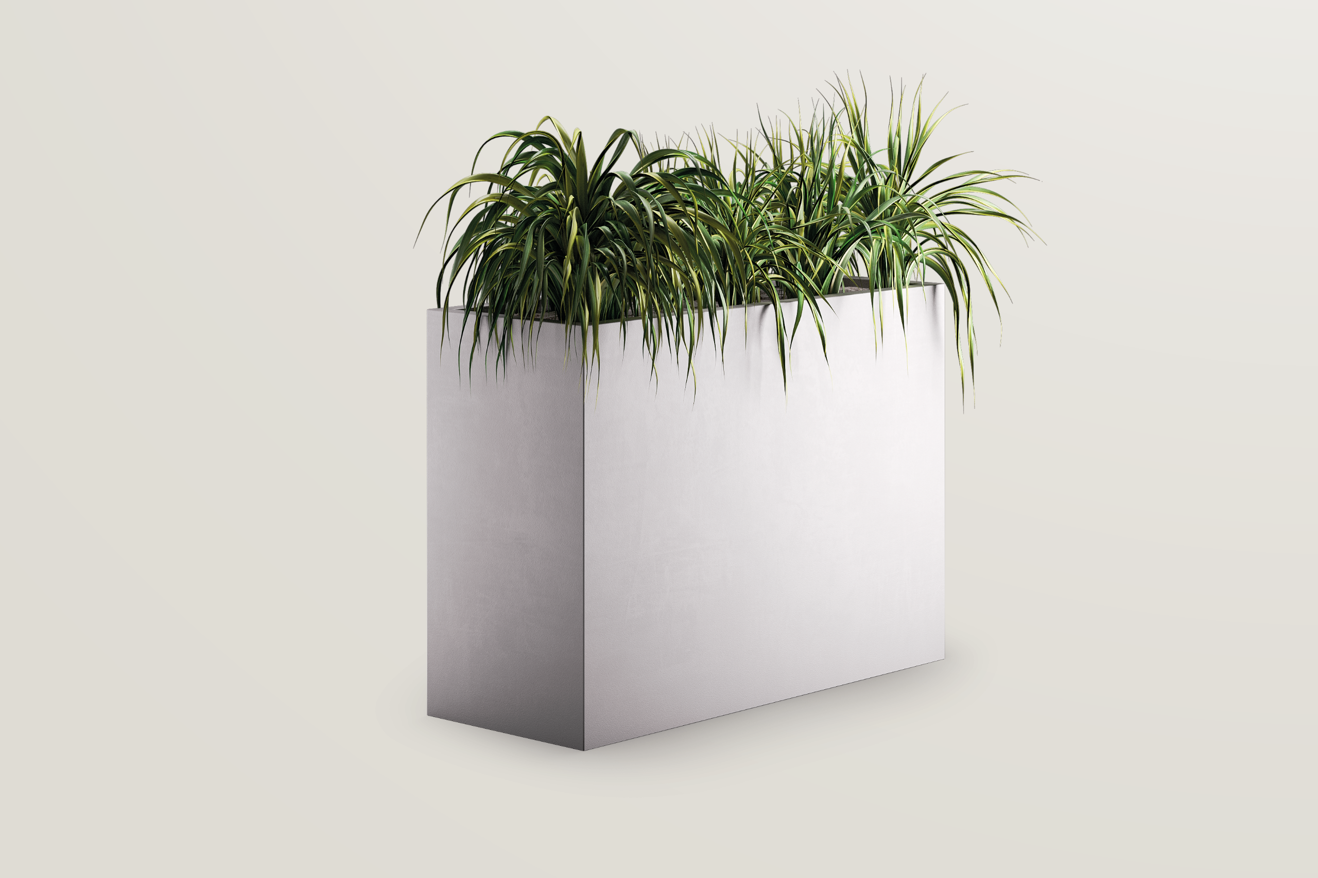Jardinière rectangulaire à la forme la plus simple et la plus linéaire possible, elle est fabriquée en acier