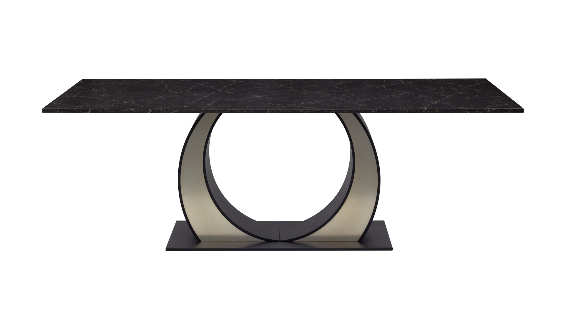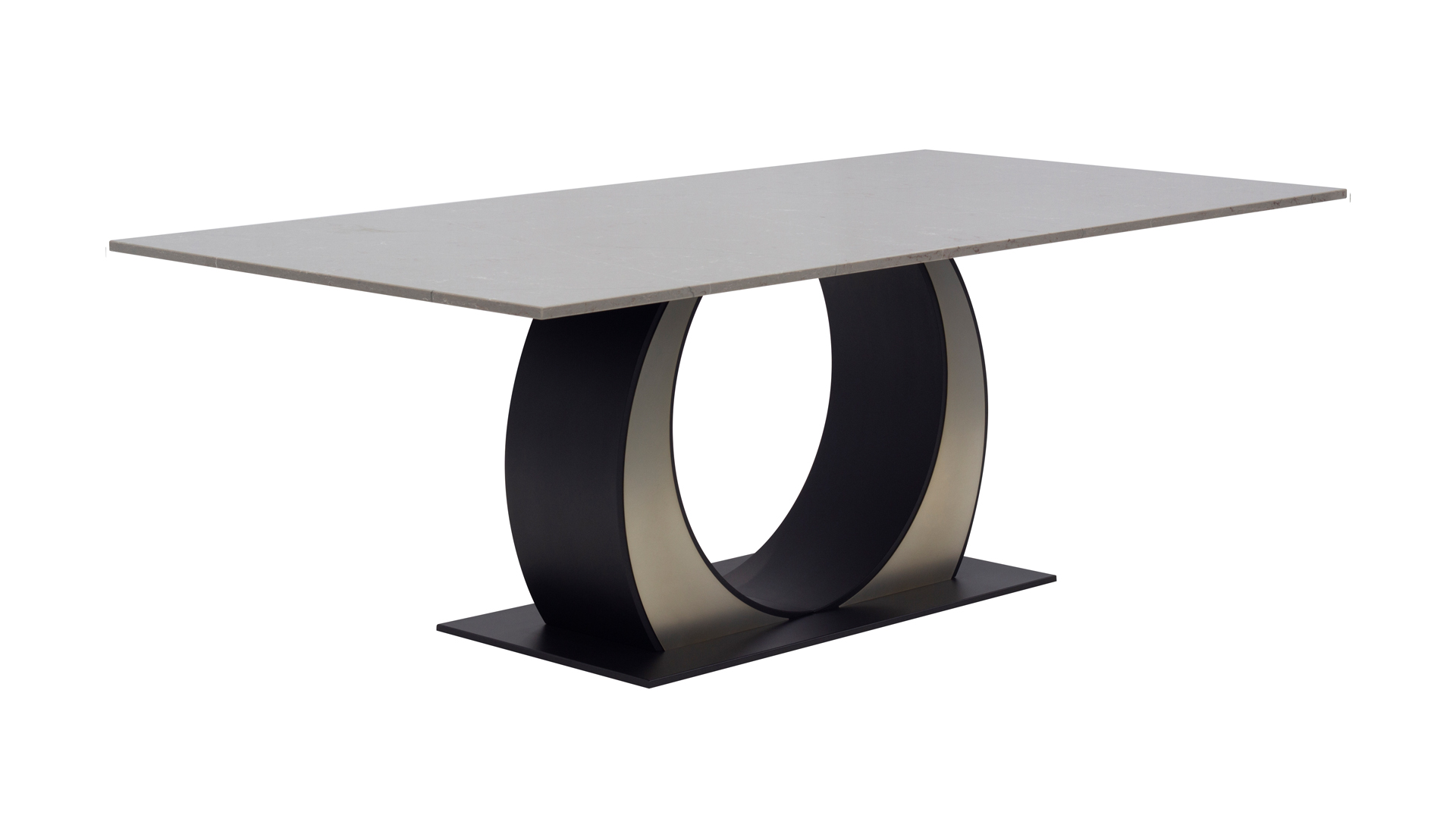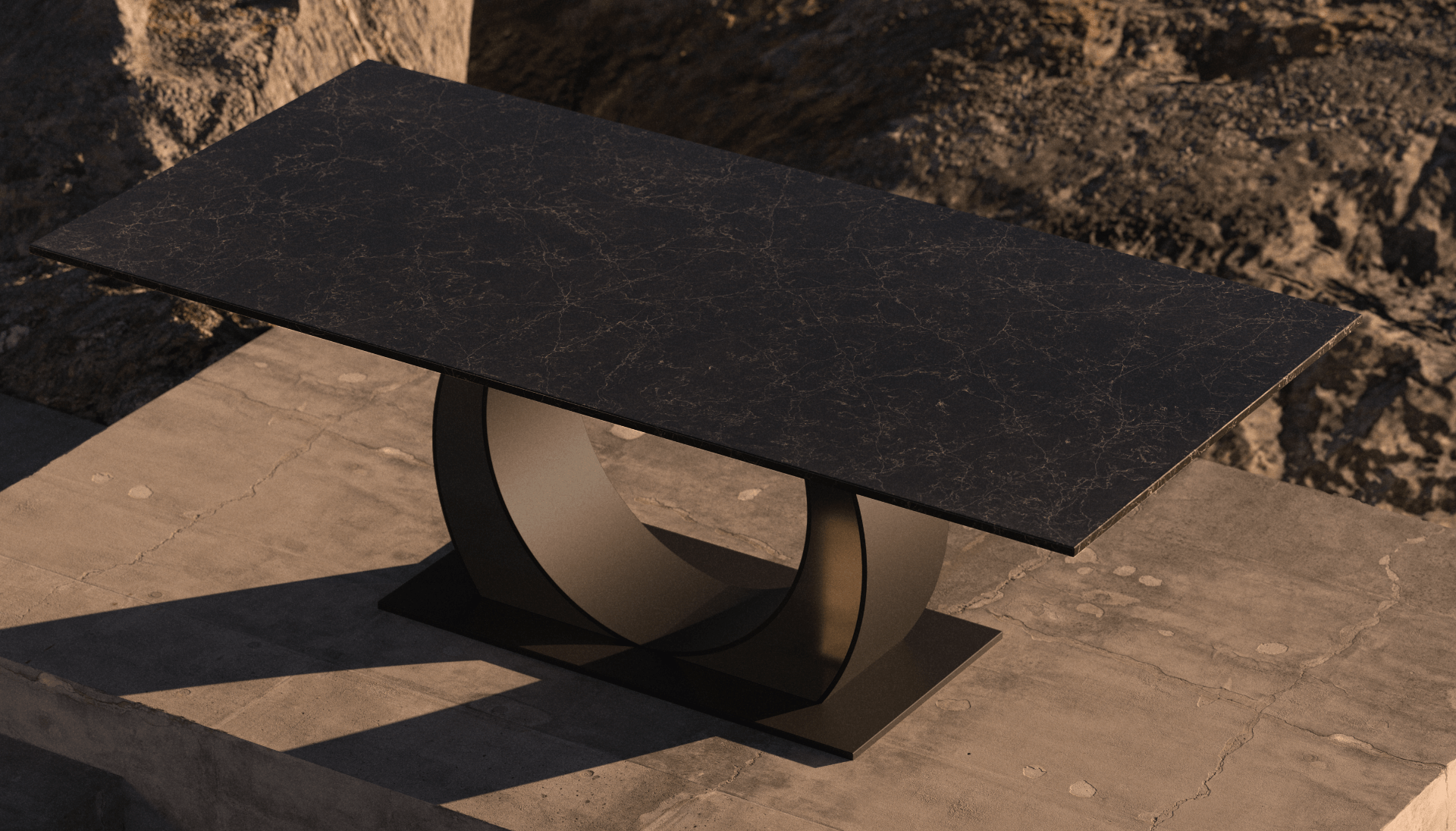 La base en métal robuste soutient l’élégant plateau en stratifié Quartzform Planet Mars,