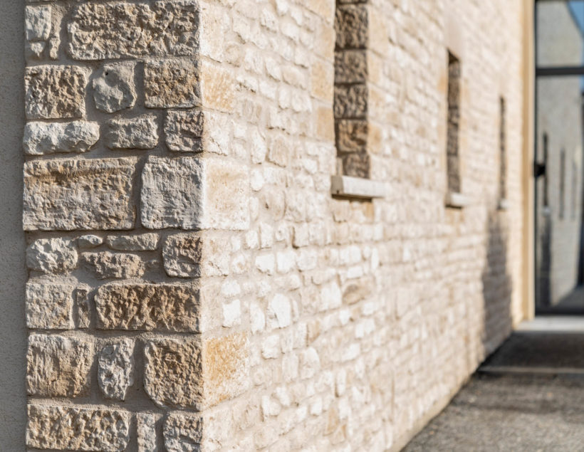 Les plaquettes de parement Pierre de CAUSSE avec leurs formes allongées et leur grain légèrement érodé rappellent les constructions des murs en pierres sèches qui ornent les chemins de campagne. La pierre de CAUSSE offre aux murs et façades un esprit très nature s’intégrant parfaitement à une rénovation traditionnelle ou à des constructions contemporaines en apportant une atmosphère chaleureuse aux habitats.