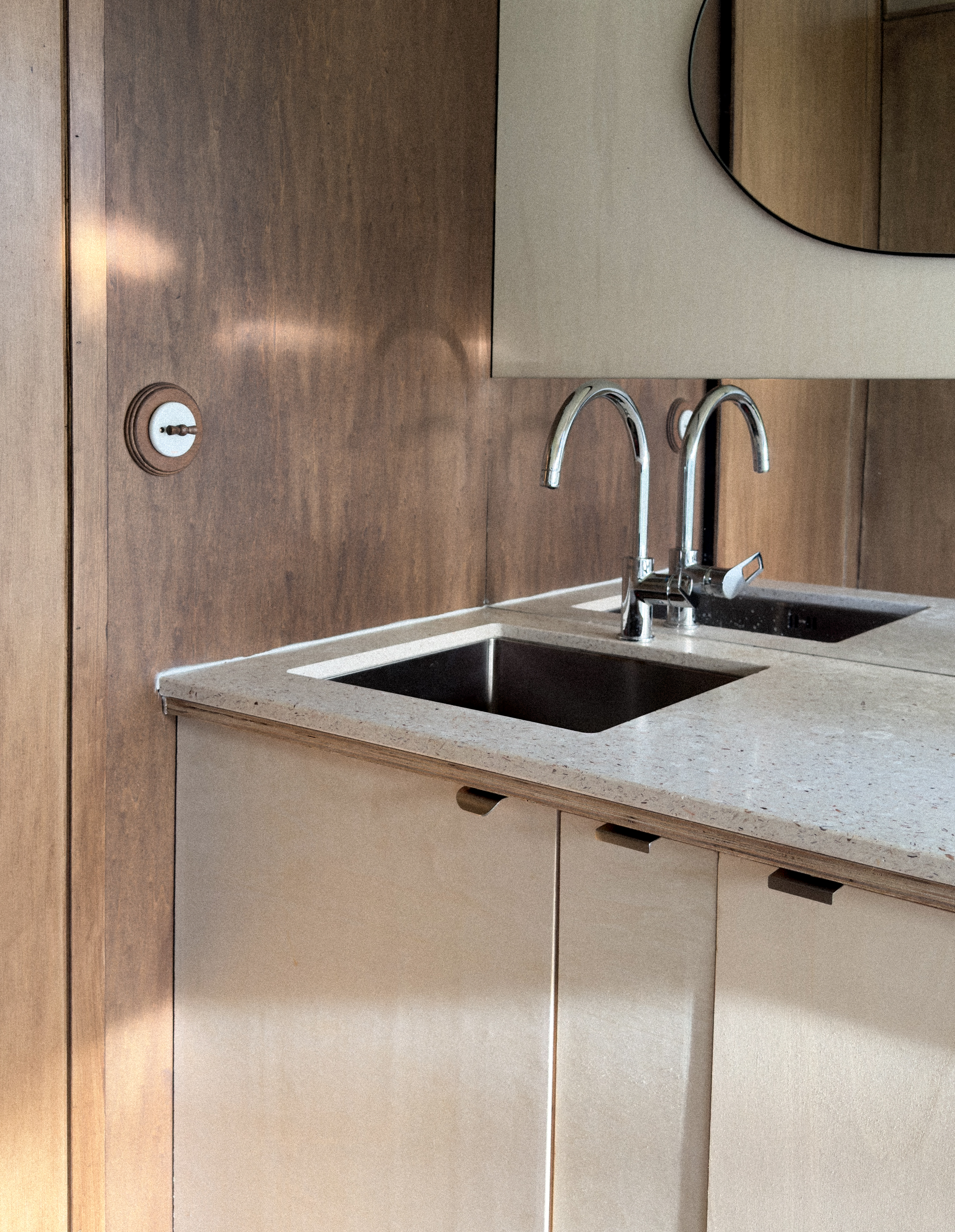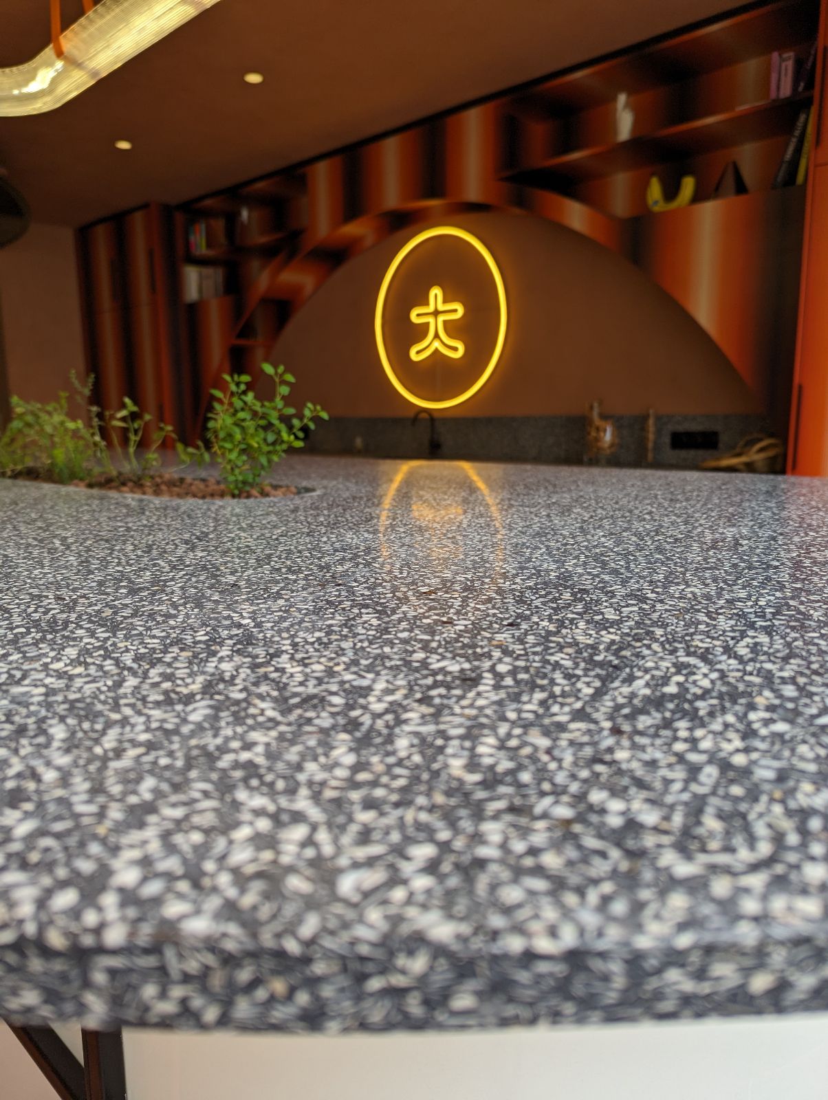 OSTREA est un matériau bas-carbone en coquillages recyclés, produit en Bretagne. S’apparentant à une pierre naturelle, il s’utilise en plans de travail, plateaux de mobilier, revêtements muraux et de sol.