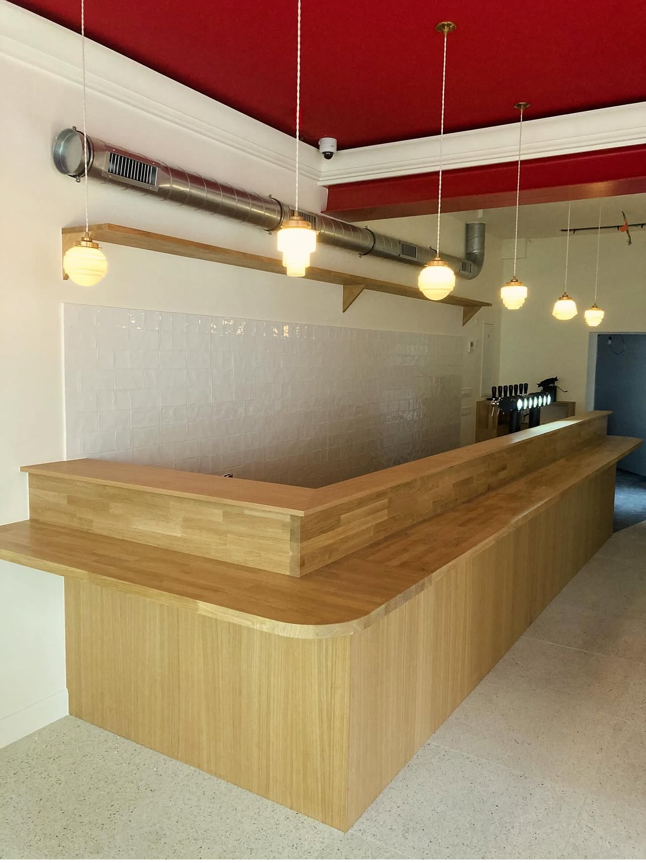 Nous le produisons dans notre usine à Rennes, sous forme de tranches de 305x145cm et 20mm d'épaisseur dans lesquelles il est ensuite possible de débiter la forme souhaitée. Le matériau s'apparente à de la pierre naturelle et se travaille comme tel, avec des outils de marbrerie.