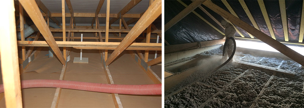 Avant de démarrer le chantier, il faut installer des passerelles pour permettre de se déplacer dans les combles sans marcher sur la ouate. Le soufflage est ensuite effectué en commençant par les parties les plus éloignées. La mise en œuvre doit prévoir une augmentation de l’épaisseur de la couche isolante de 20% afin de tenir compte du tassement dans le temps. Pour en savoir plus, lisez notre article « comment bien isoler ses combles perdus en ouate de cellulose ».