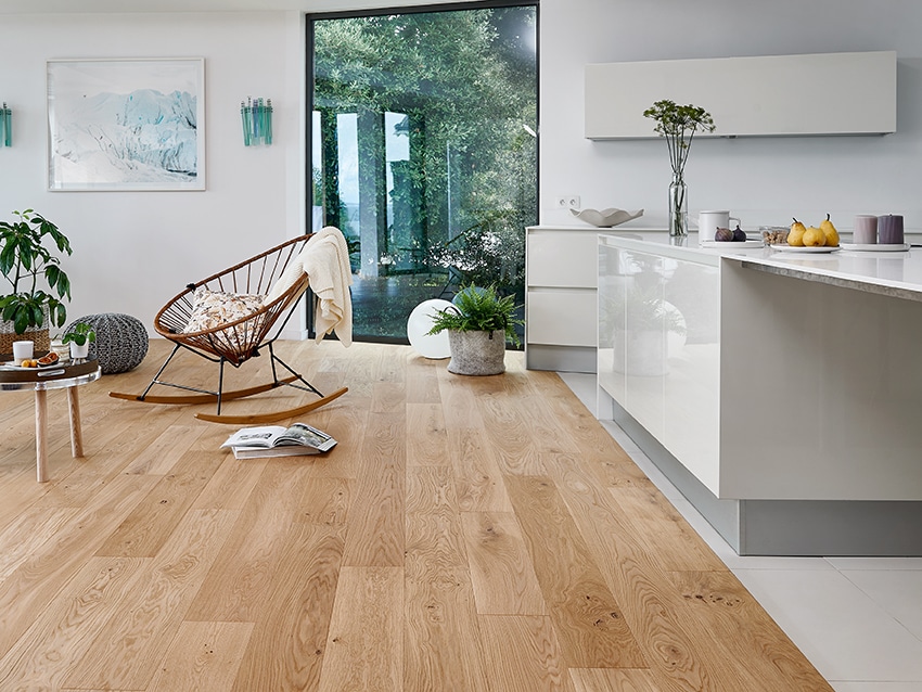 Lancé en exclusivité par Panaget en 2010, le vernis ‘Bois Flotté’ plaît pour sa matité exceptionnelle et son apparence de bois naturel. Un best-seller de la collection Naturels Intemporels qui sublime ce parquet clair. À poser idéalement dans une pièce de vie, pour profiter de beaux jeux de lumières.
