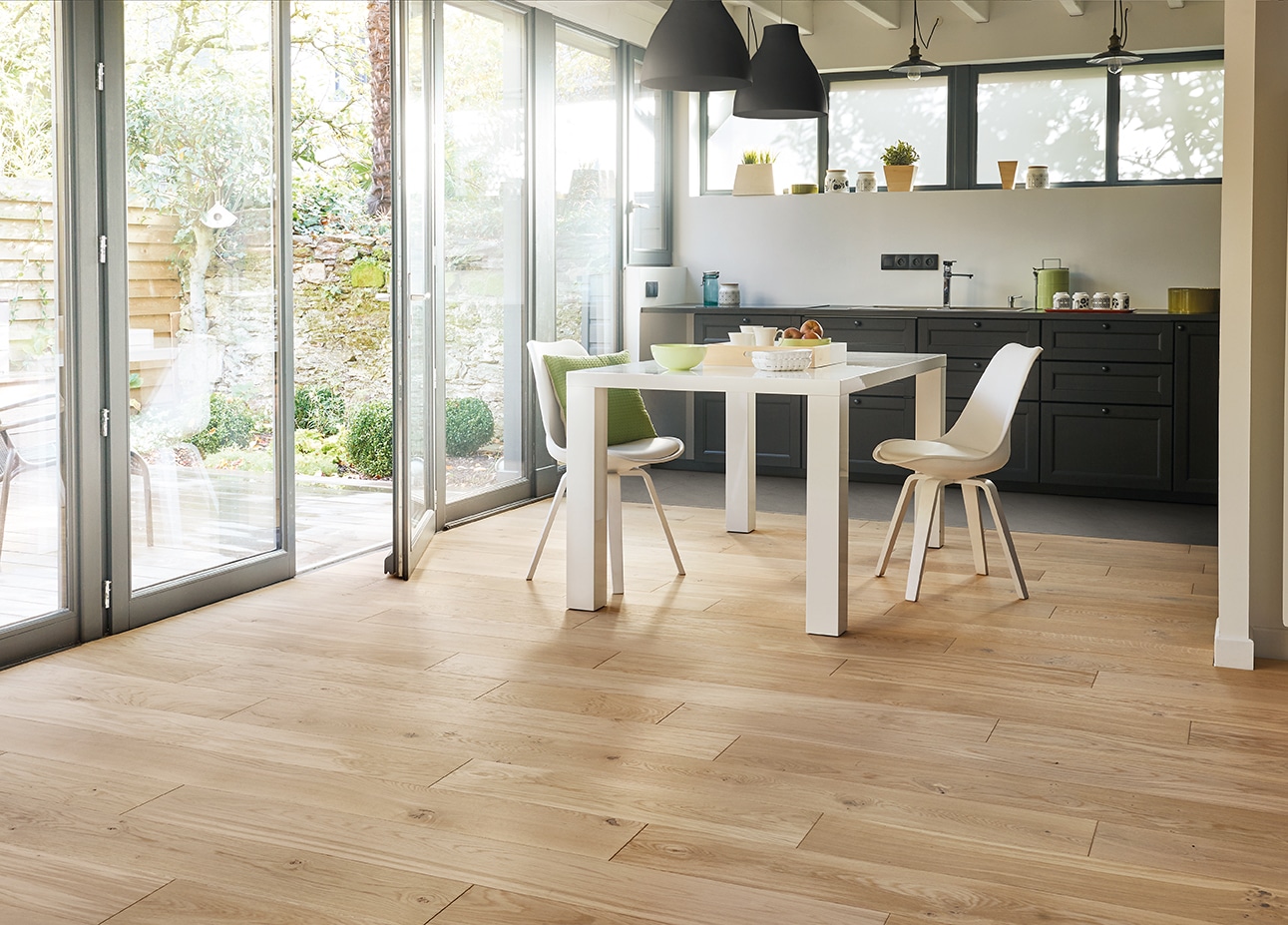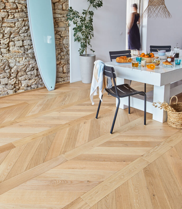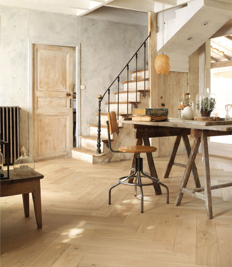 Salles d’attente d’aéroport, boutiques avec accès direct sur l’extérieur, amphithéâtres, bureaux collectifs, halls de réception : ce parquet Panaget, issu de la gamme Grand Trafic, est idéal aux zones de passage intense. Sa finition ‘Bois flotté’ révèle les spécificités du bois, d’une couleur naturelle, chaude et apaisante.