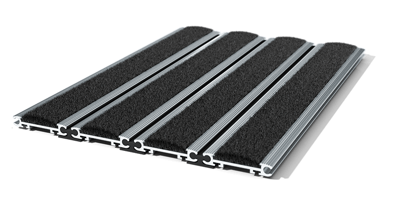 Composé de rails en aluminium co-extrudé et de charnières vinyles disponibles en structure ouverte ou fermée, le tapis d'entrée Pedimat® se distingue par sa polyvalence.