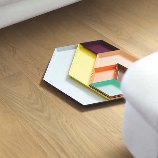 L’âme centrale de nos parquets est fabriquée à partir de bois issu d’espèces d’arbres à croissance rapide ou de bois de récupération. Seule la couche supérieure de nos parquets est fabriquée à partir de bois d’espèces à croissance lente, comme le chêne.