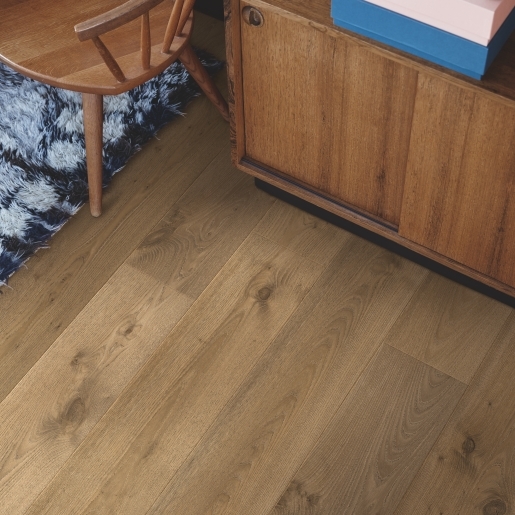 Les revêtements de sol stratifiés Arendal (Modern plank, 9 mm) aux lames légèrement plus longues et équilibrées confèrent une allure classique aux pièces de toutes dimensions. La gamme Arendal comporte un vaste choix de coloris et propose des lames d’une grande diversité naturelle, pour que tout le monde puisse trouver un sol authentique adapté à son intérieur. Arendal est un revêtement de sol Sensation, ce qui signifie qu’il présente des structures profondes et authentiques et une finition mate sophistiquée. La couche supérieure protectrice TitanX™ confère une grande résistance aux rayures et à l’usure au revêtement de sol, tandis que la technologie AquaSafe le rend résistant à l’eau et facile à entretenir. Les revêtements de sol Arendal sont rapides et faciles à poser avec le système de clic PerfectFold™.