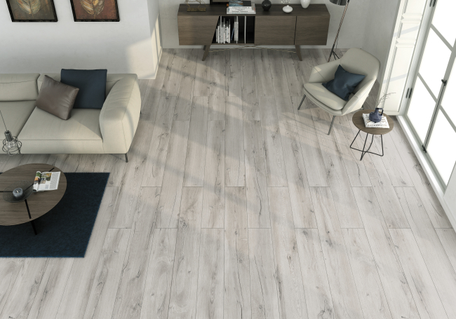 La gamme de Peronda, inspirée du bois, s’est enrichie de la nouvelle collection Mumble. Carreaux de porcelaine avec un motif de bois rustique très réaliste, ils sont disponibles dans un format 16x90, 20x120cm et 23x180cm dans un choix de quatre couleurs différentes (chêne vieilli, chêne français, noyer et chêne brossé). Mumble propose également un décor, Barcelos, avec des inserts inspirés des carreaux de céramique artisanaux.