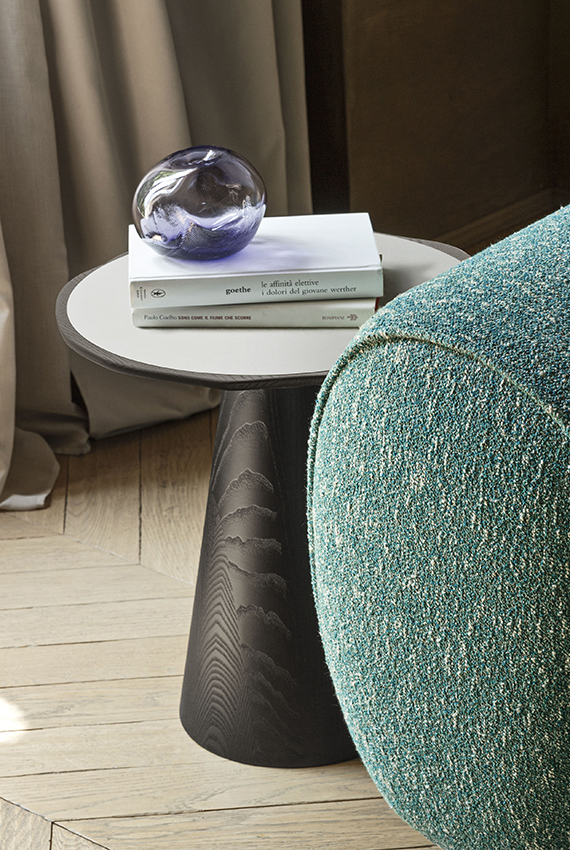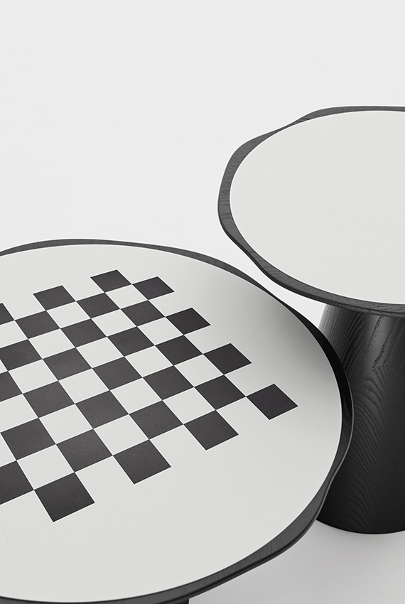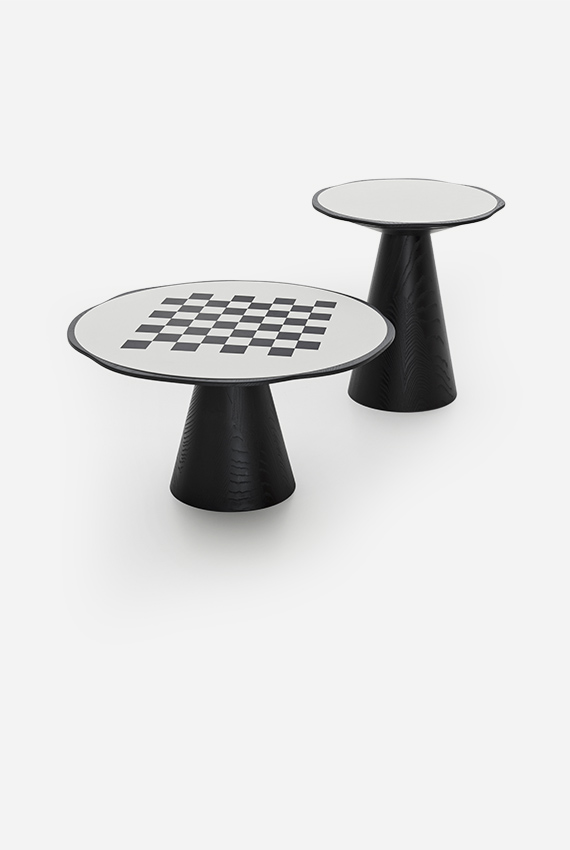 Iconique et géométrique, la table basse en bois massif Scacco évoque les formes d’un pion. Le piètement conique supporte un plateau à bord ondulé à l’intérieur duquel est encastré un plan laqué et contrastant avec la structure au niveau de la couleur et de la matière. Sous le plateau, une rainure facilite la préhension de la table basse que l’on pourra ainsi aisément déplacer à un autre endroit de la pièce pour en modifier l’aménagement. Scacco existe en deux dimensions au choix : table basse ou bien table haute, parfaite pour une installation à côté d’un canapé ou d’un fauteuil.