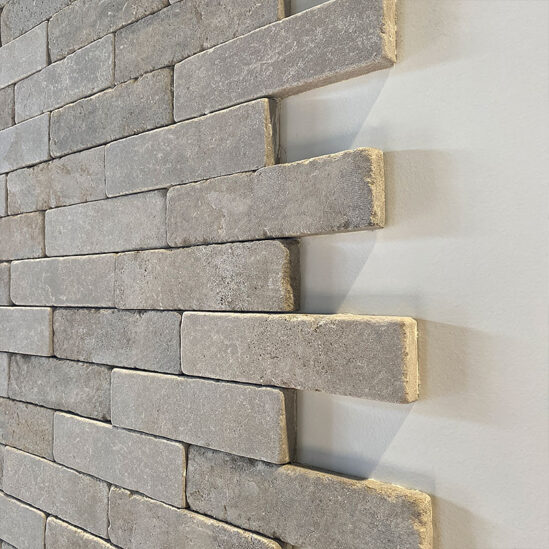 Nos briquettes Mera gris métisse peuvent être installées aussi bien au sol (en dallage) qu’au mur (en parement), en intérieur comme en extérieur. Pour la pose, vous avez le choix entre plusieurs options : pose jointoyée, pose sans joints avec utilisation de croisillons pour conserver un espace, ou pose sans joint bord à bord.