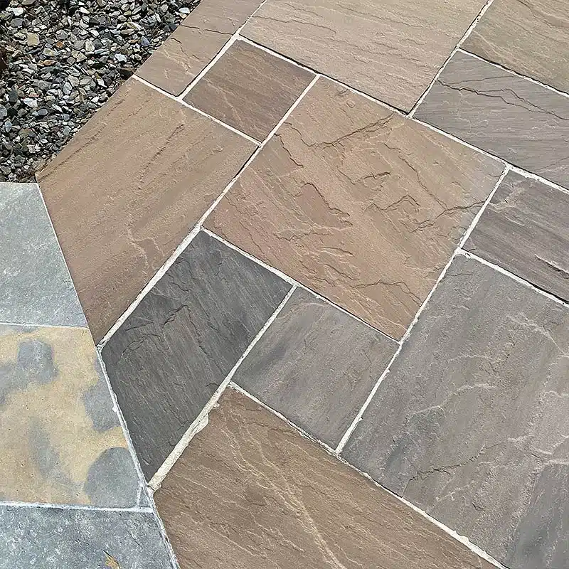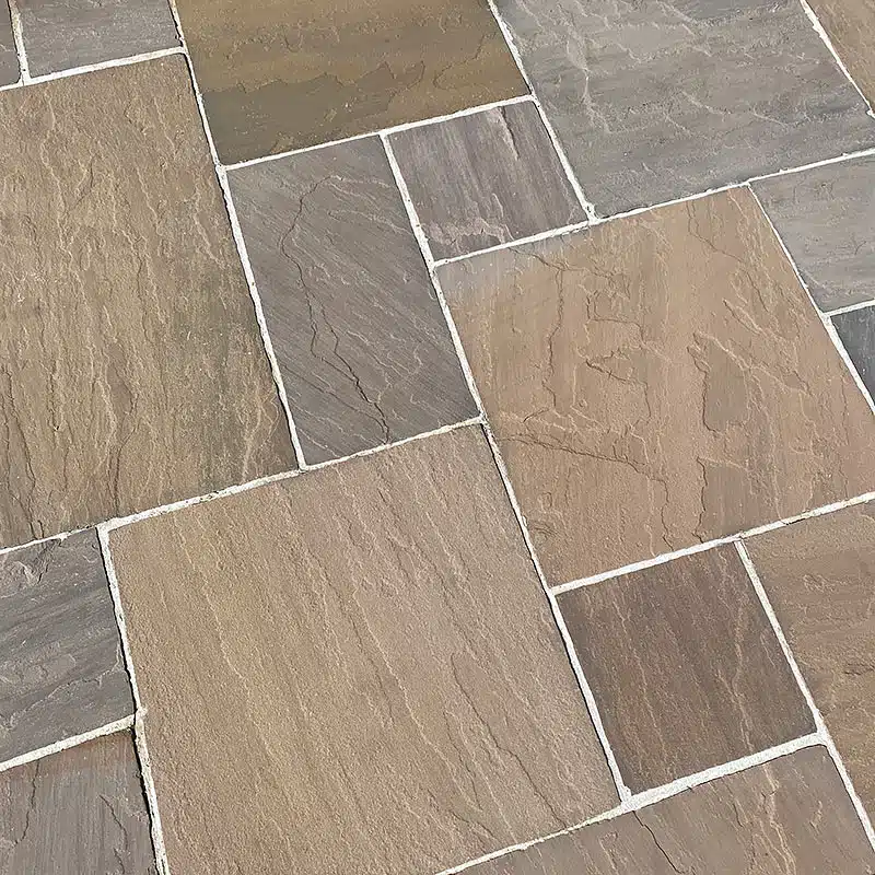Découvrez notre magnifique dallage en grès Kandla multicolore à la finition clivée. Ses teintes vont du brun au gris avec des nuances d’ocre et de marron. Chaque dalle a une surface distinctive presque « ardoisée », ajoutant une touche authentique à votre extérieur.