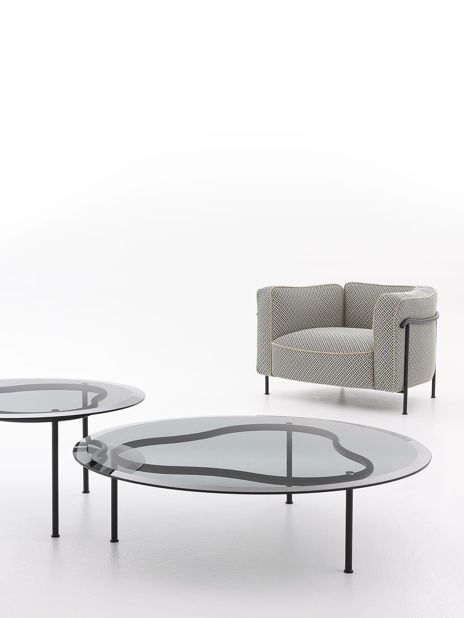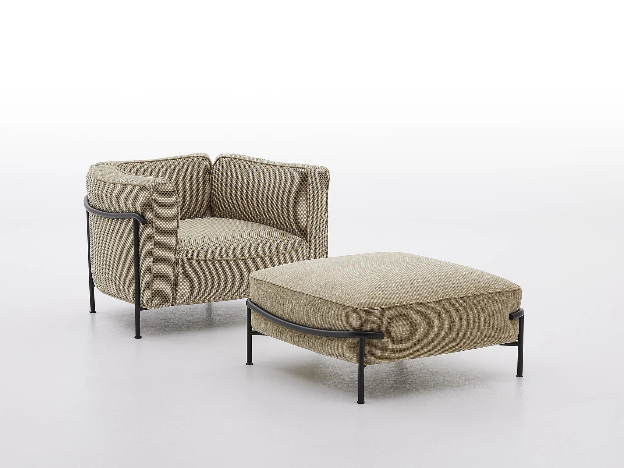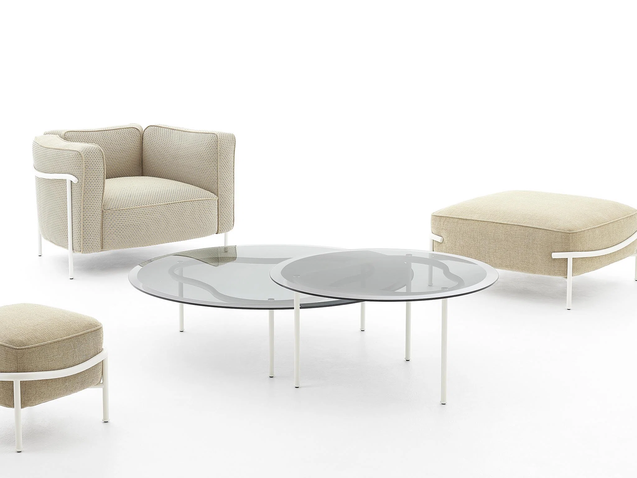 La ligne indoor et outdoor Mirage, nous ramène aux songes des nuits d'été. Elle célèbre l'attente de la saison estivale, les premiers rayons de soleil du printemps, qui apportent un sentiment de joie et d'euphorie. La générosité des coussins épouse les formes du corps et nous invite à nous détendre, en profitant du soleil. La structure métallique fine, sous forme de vagues, entoure les coussins et fait référence à un mirage, une illusion d'optique due à la réfraction inégale des rayons solaires.