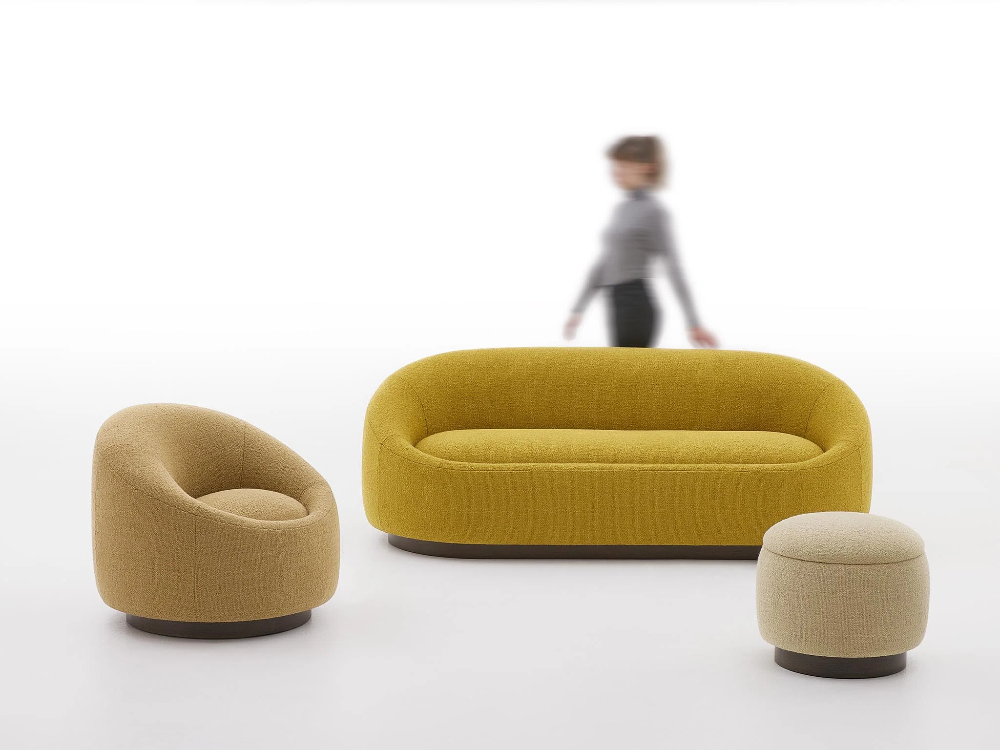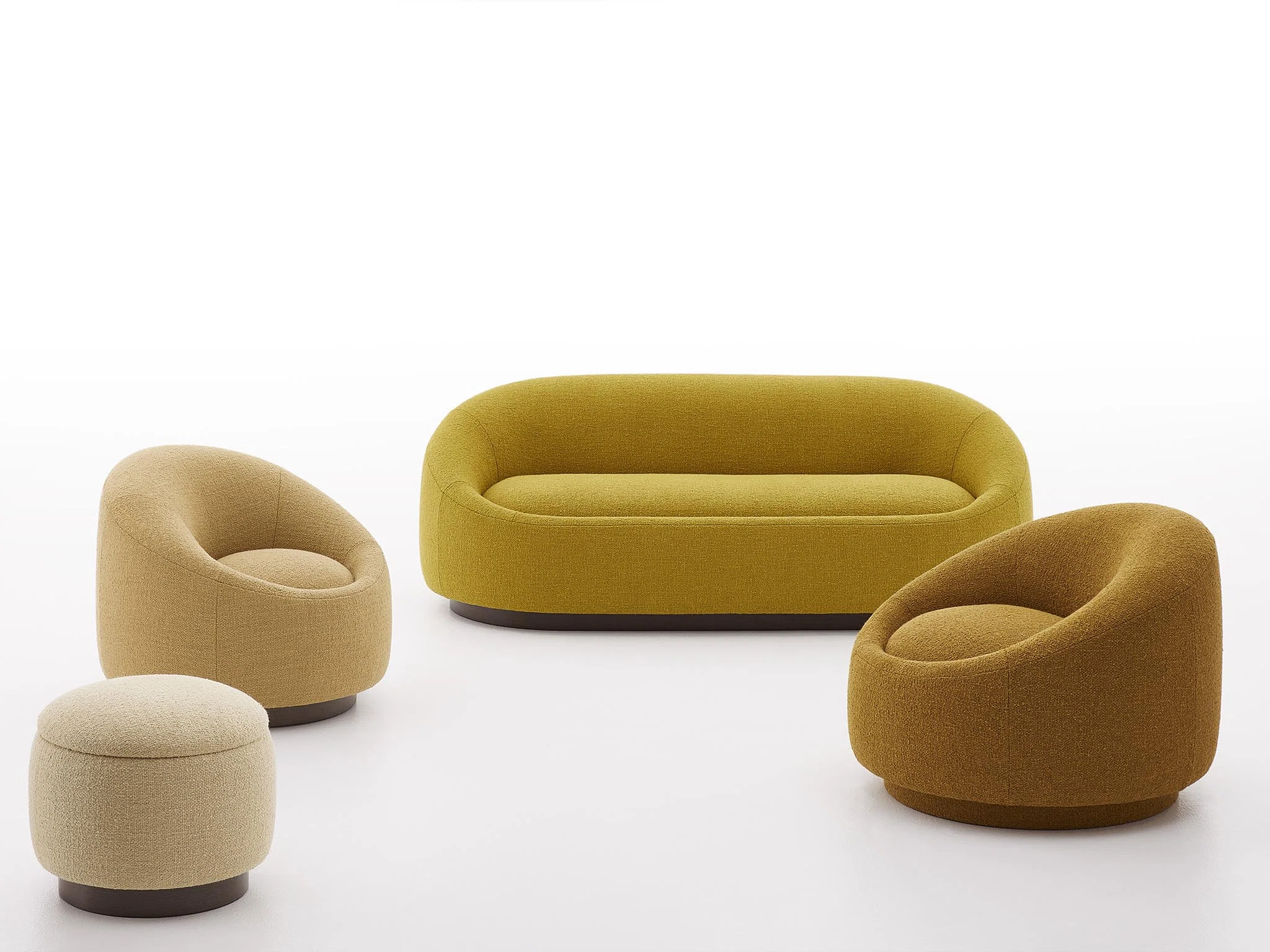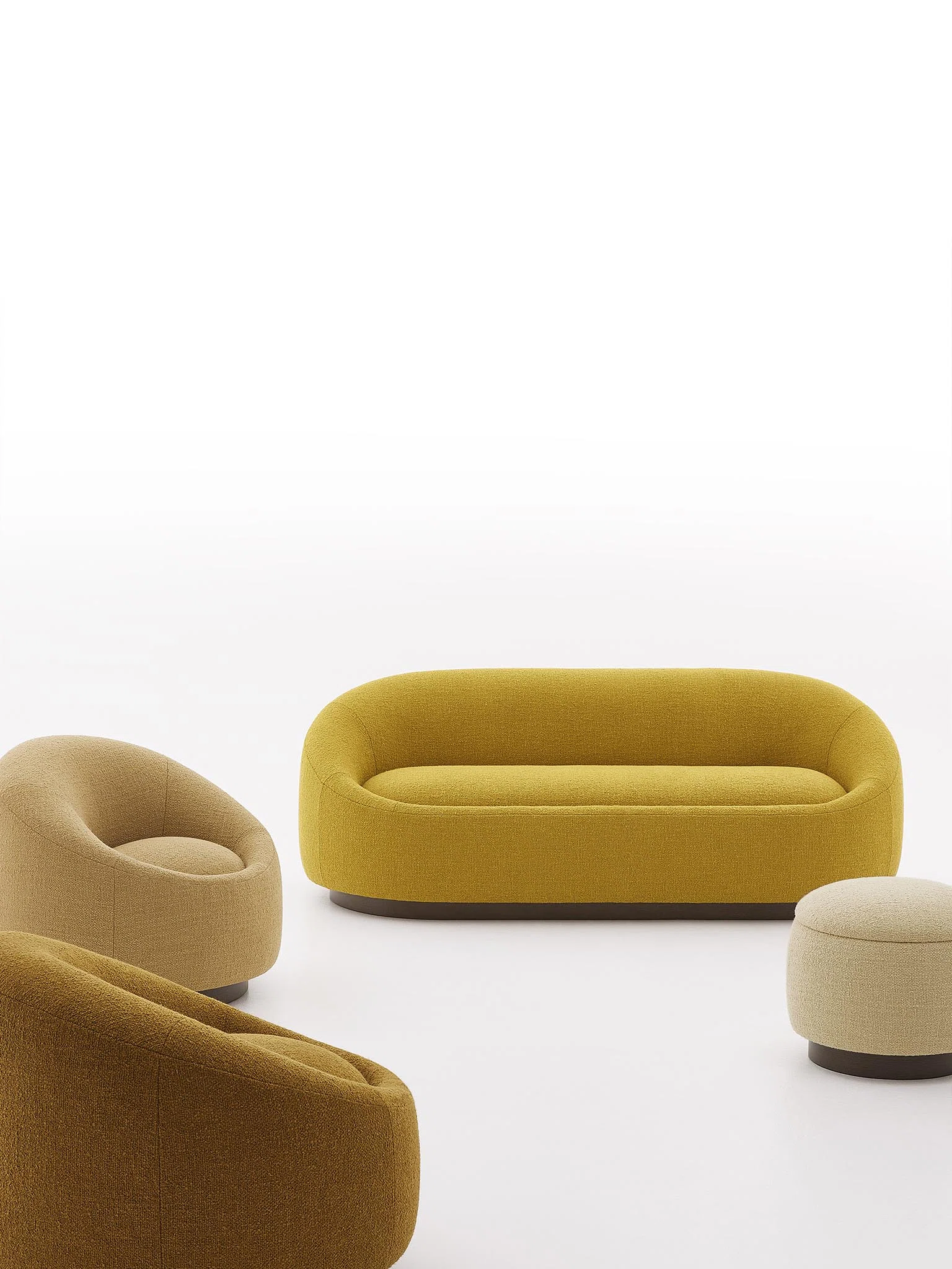 Dessinée par Christian Haas, la ligne Berlin s'inscrit dans un vocabulaire esthétique organique, tout en rondeur. La ligne épurée du dossier enveloppe avec harmonie l'assise dans un mouvement continu. Le socle tapissé soulève légèrement la structure et apporte de la légèreté à l'ensemble. Intégralement gainés de tissu, canapé, pouf et fauteuil rendent hommage au savoir-faire de la Maison Pierre Frey.