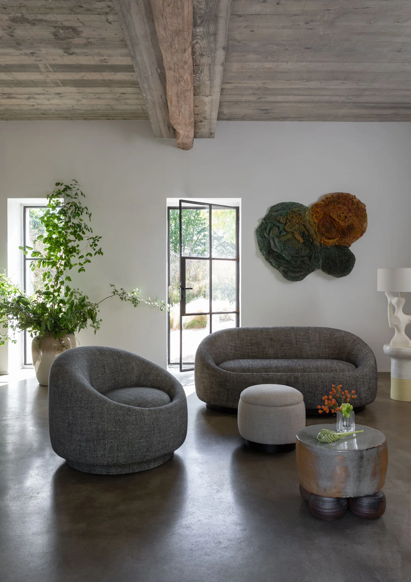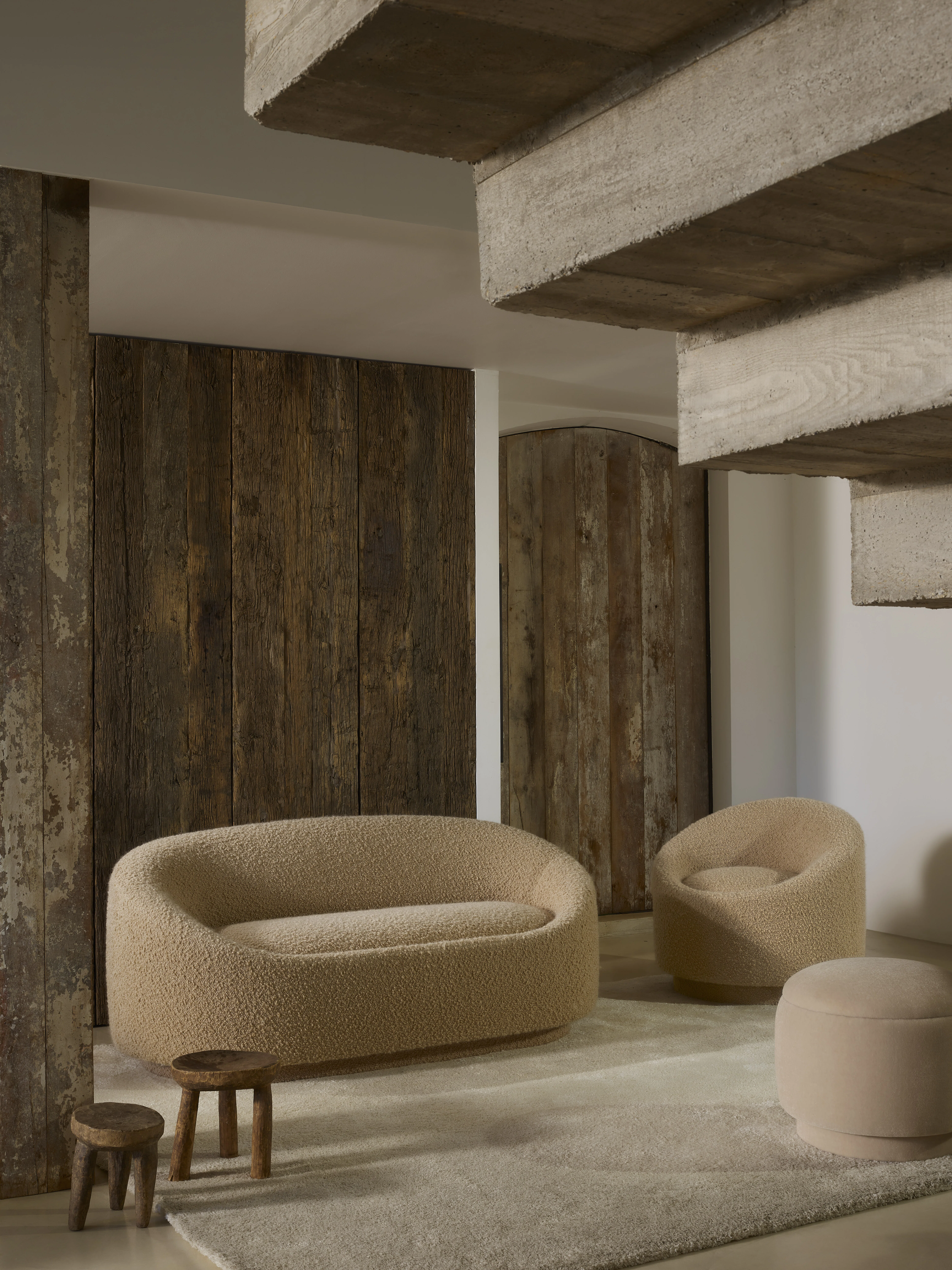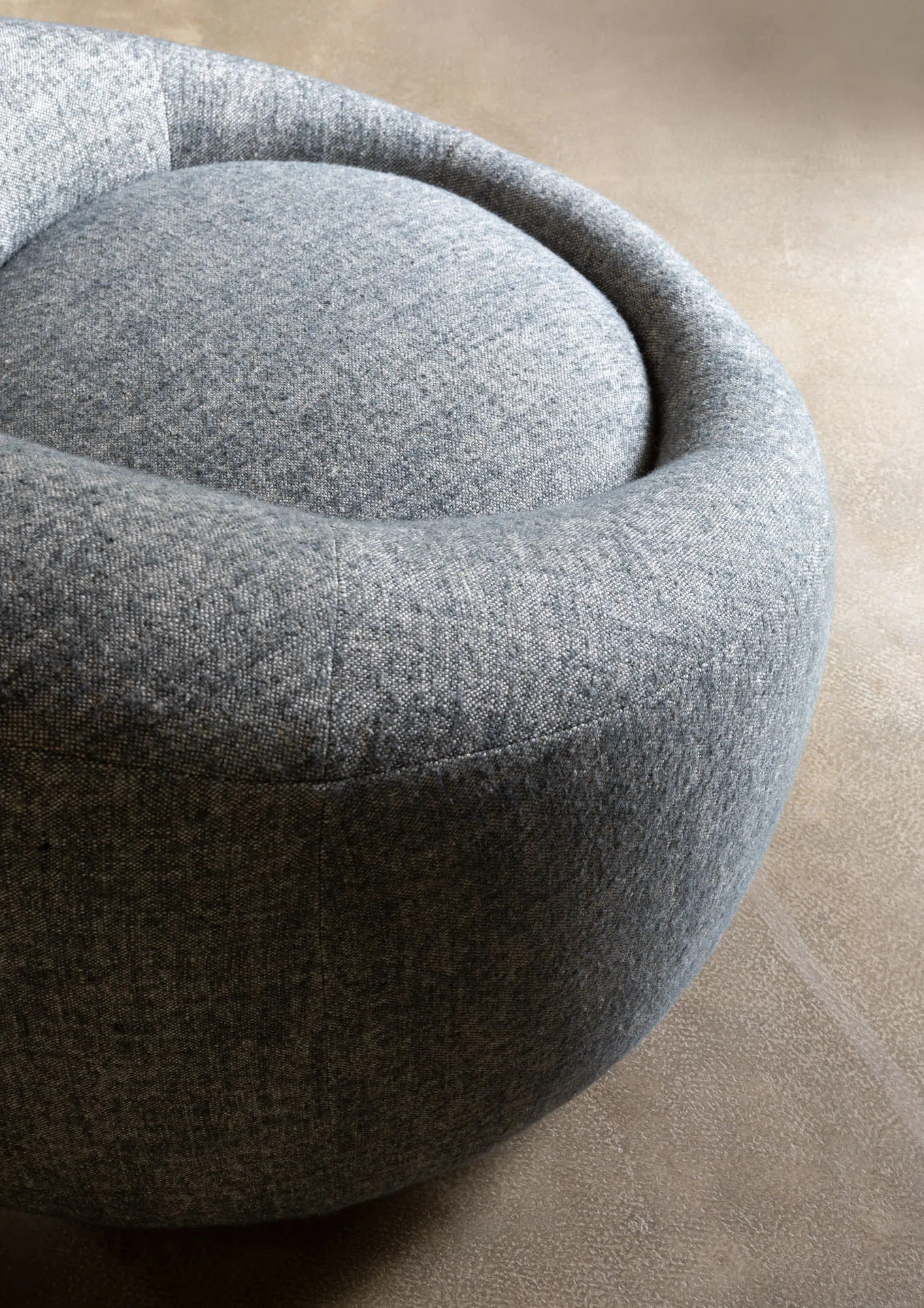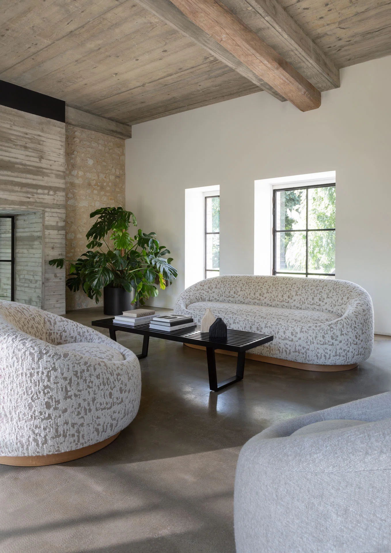 Dessinée par Christian Haas, la ligne Berlin s'inscrit dans un vocabulaire esthétique organique, tout en rondeur. La ligne épurée du dossier enveloppe avec harmonie l'assise dans un mouvement continu. Le socle tapissé soulève légèrement la structure et apporte de la légèreté à l'ensemble. Intégralement gainés de tissu, canapé, pouf et fauteuil rendent hommage au savoir-faire de la Maison Pierre Frey.